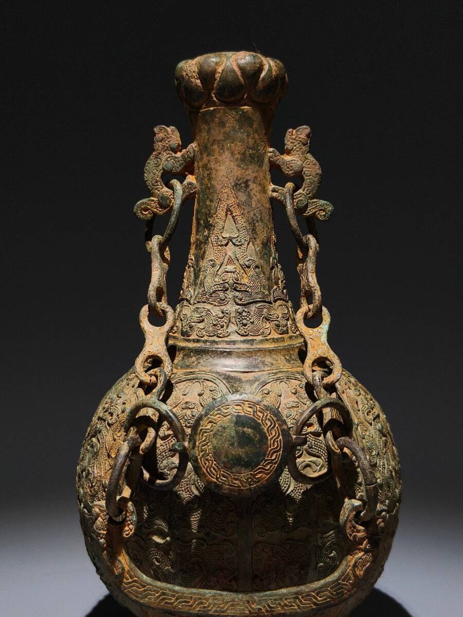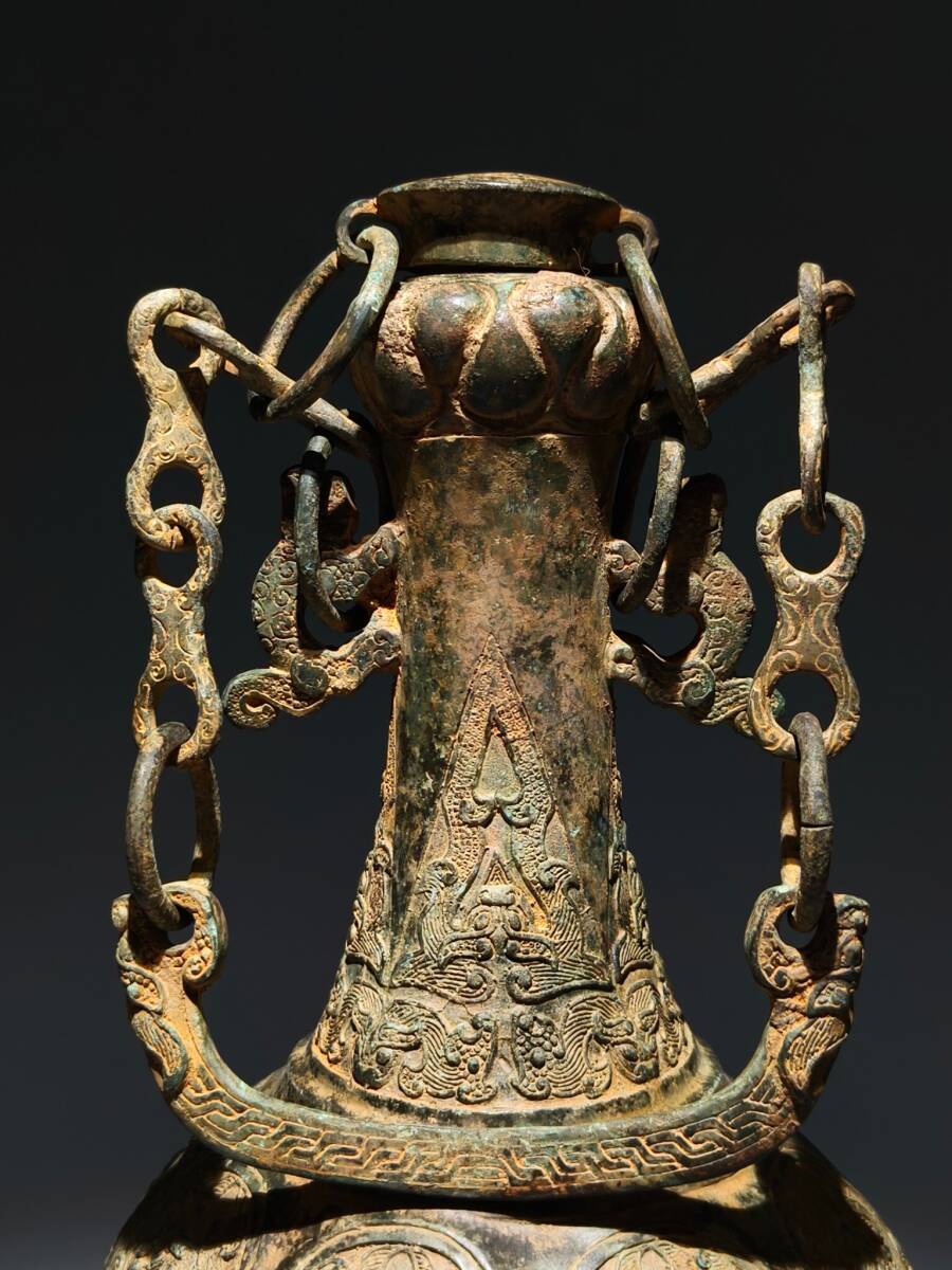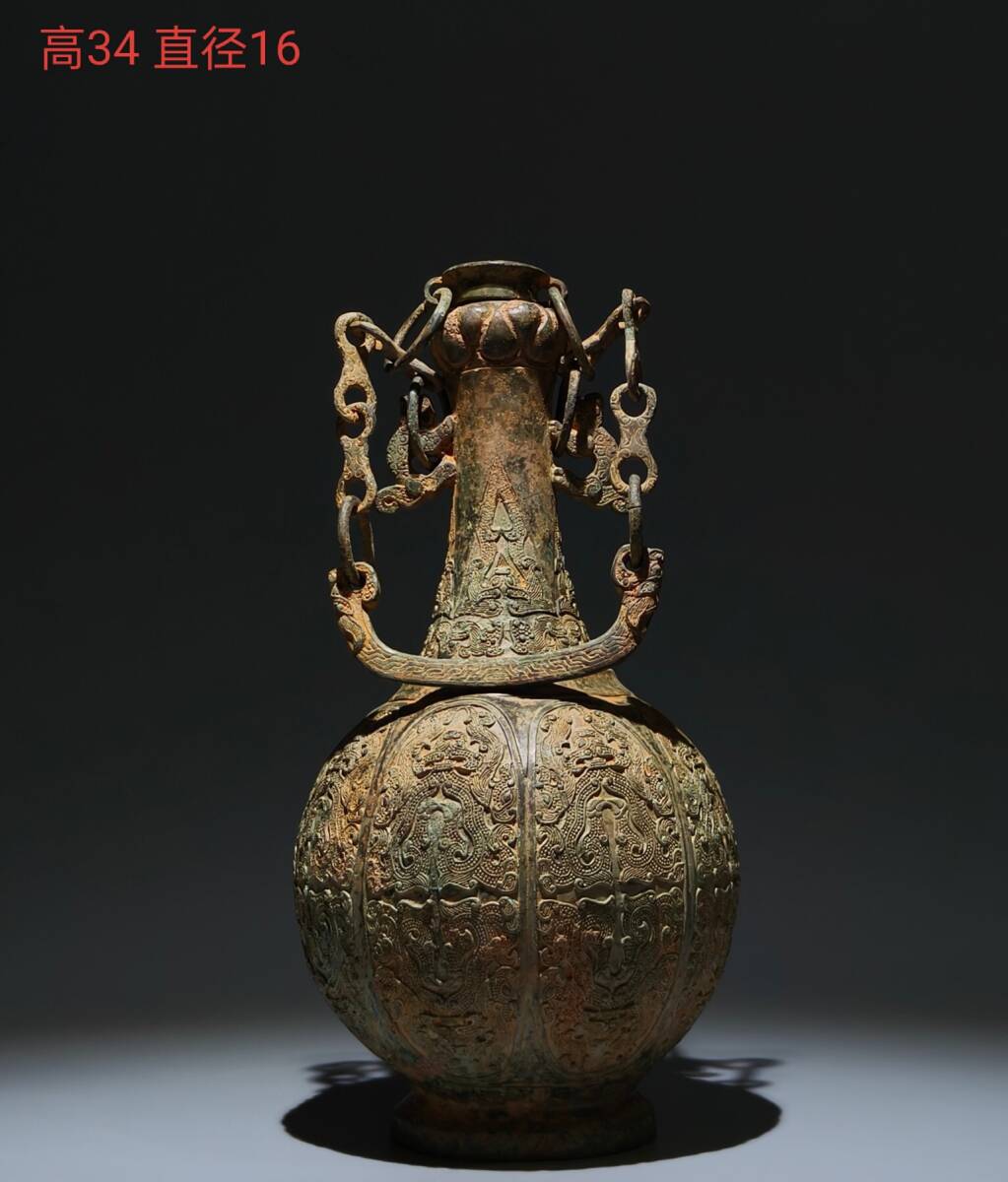 【超珍館蔵】春秋 青銅製 龍紋チェーン瓶 青銅器 置物 賞物 古賞物 古董品 古美術品 時代物 旧家蔵出 稀少珍蔵品