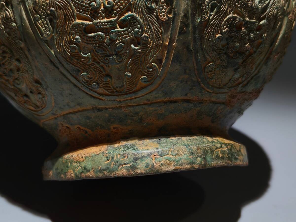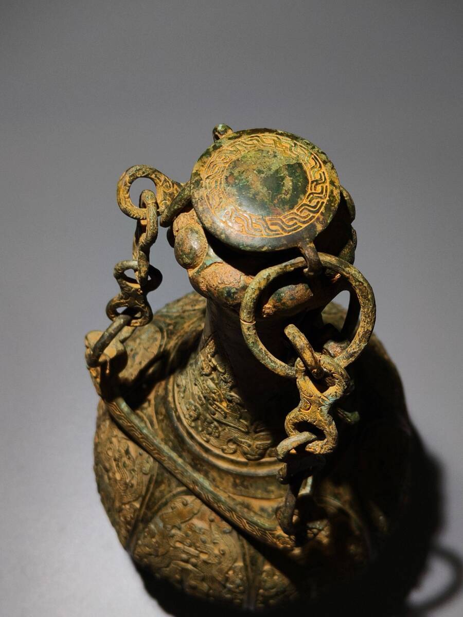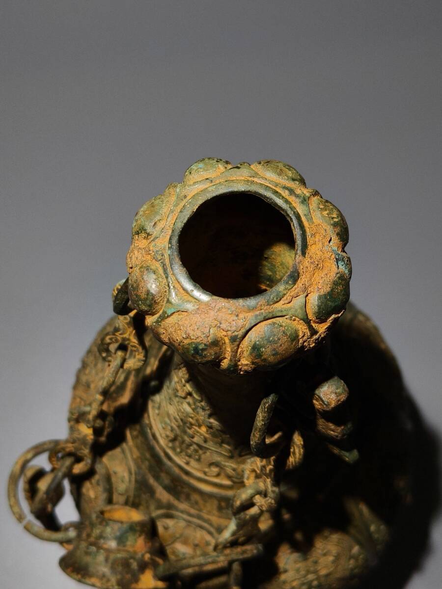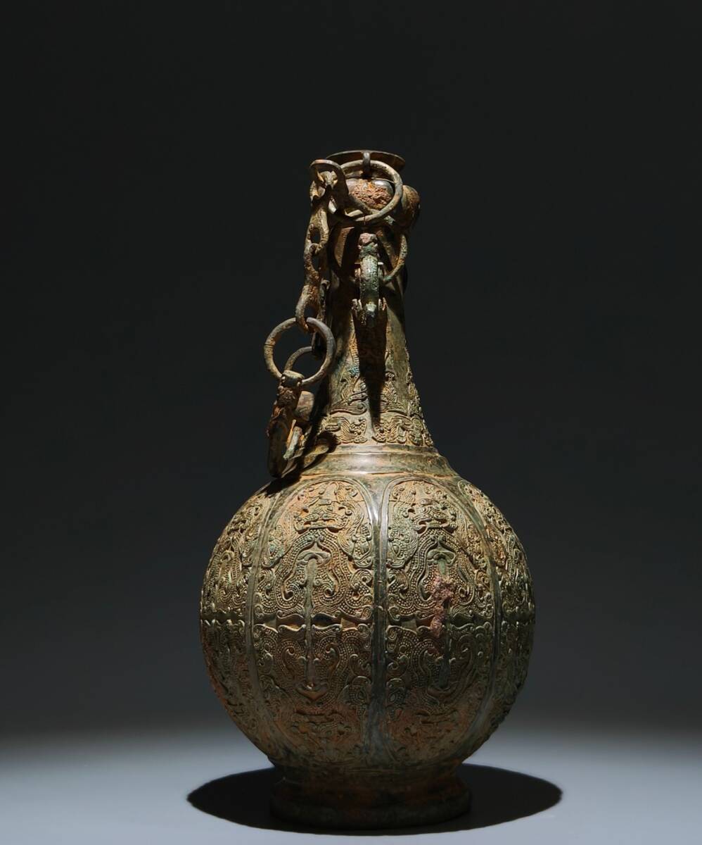 【超珍館蔵】春秋 青銅製 龍紋チェーン瓶 青銅器 置物 賞物 古賞物 古董品 古美術品 時代物 旧家蔵出 稀少珍蔵品