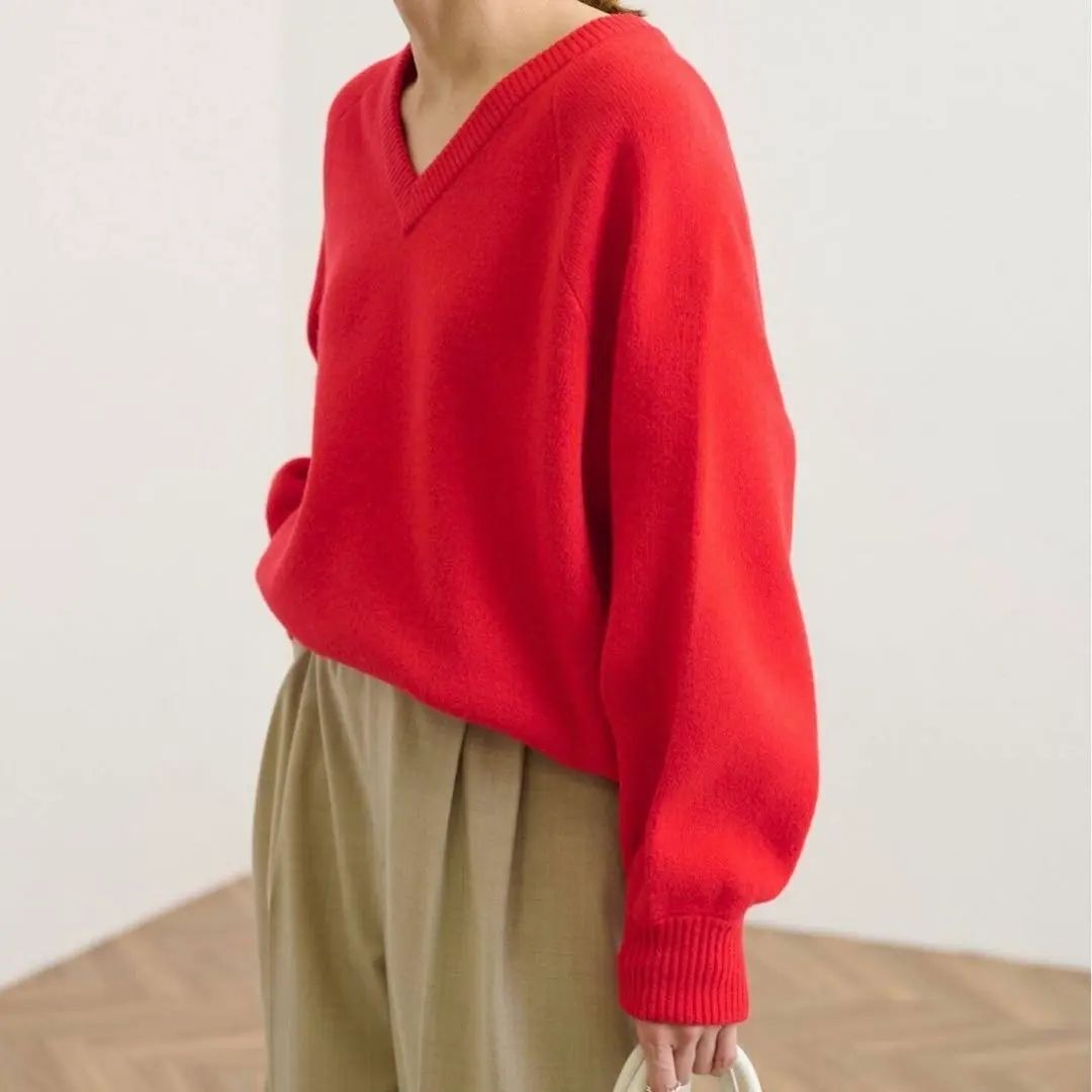 2023AW AQUA Vネックプルオーバー3 ニット セーター アクアVネックPO ゆったりサイズ カシミヤ混 キレイ色