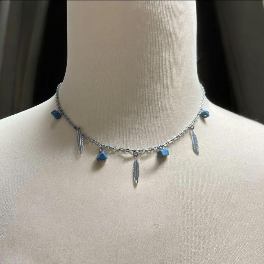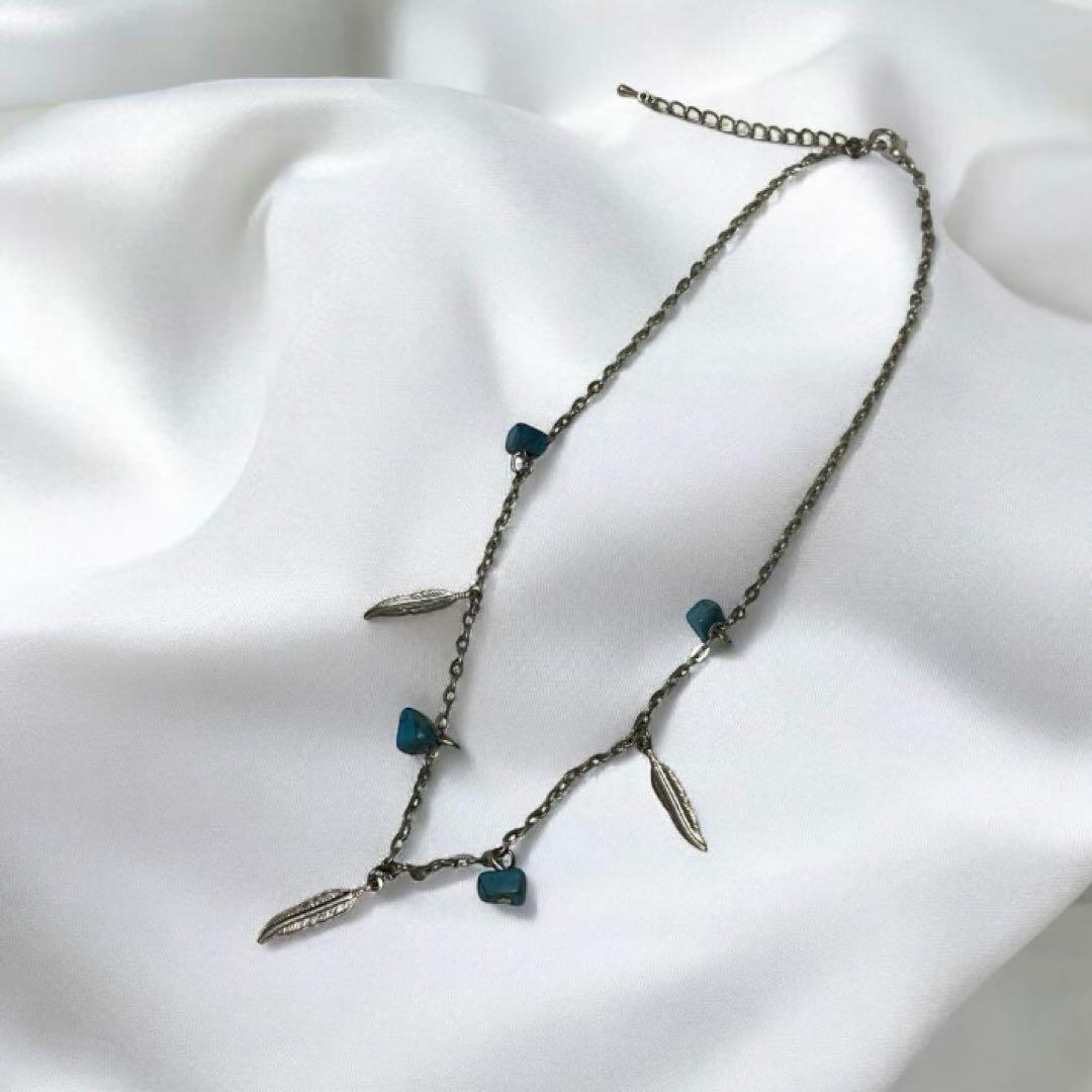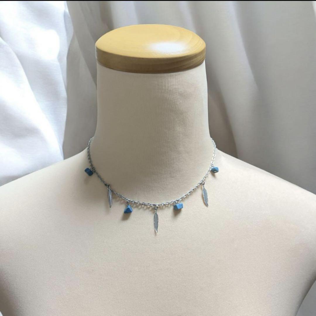 小ぶりなネックレスですが、ターコイズ風の石とシルバーカラーの葉っぱデザインがとてもおしゃれです。