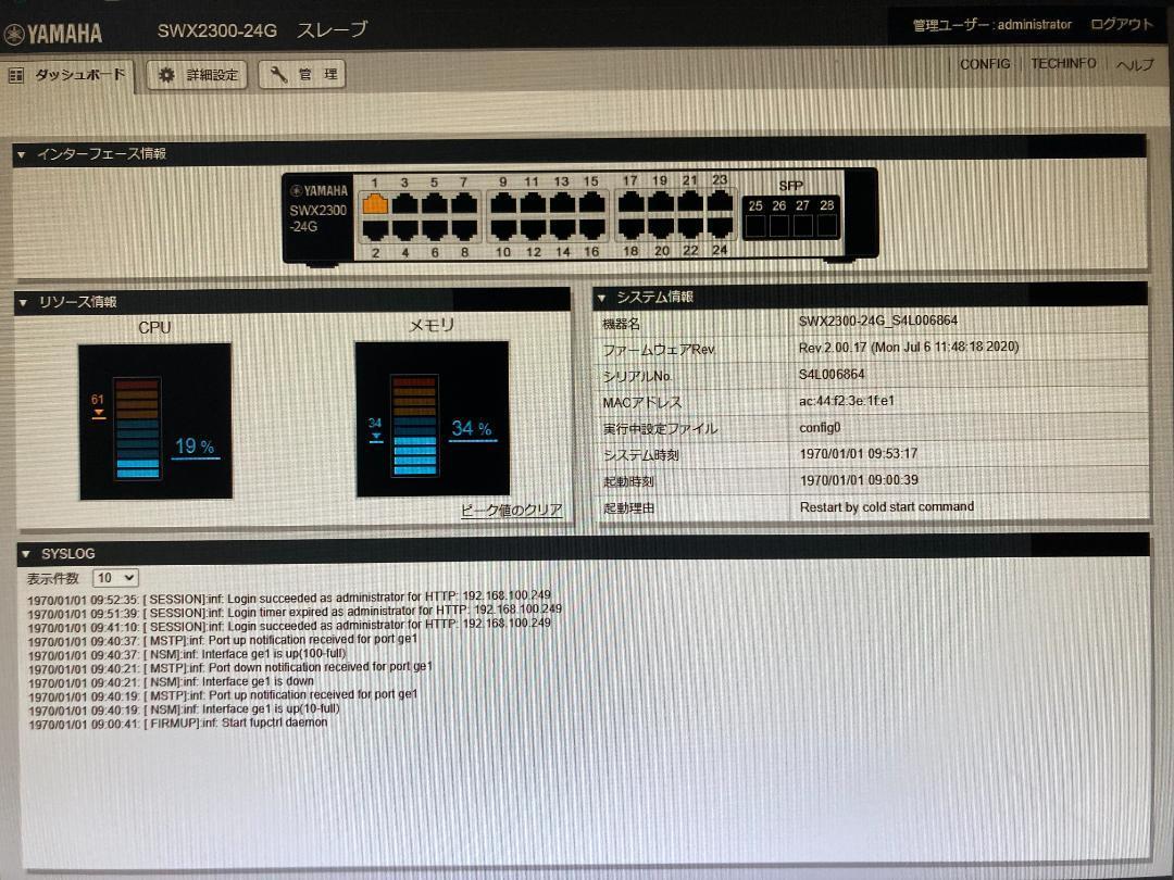 YAMAHA 24ポート スマートL2スイッチ SWX2300-24G