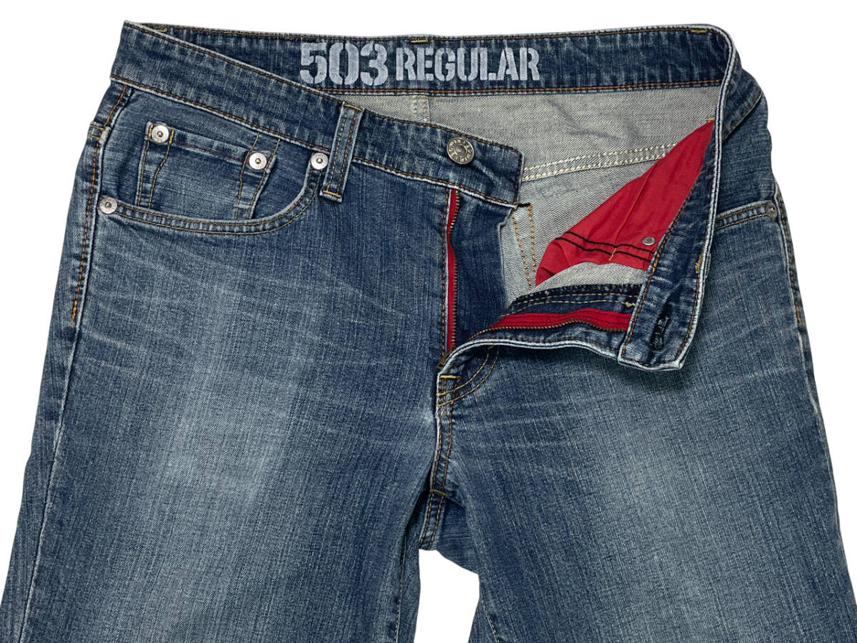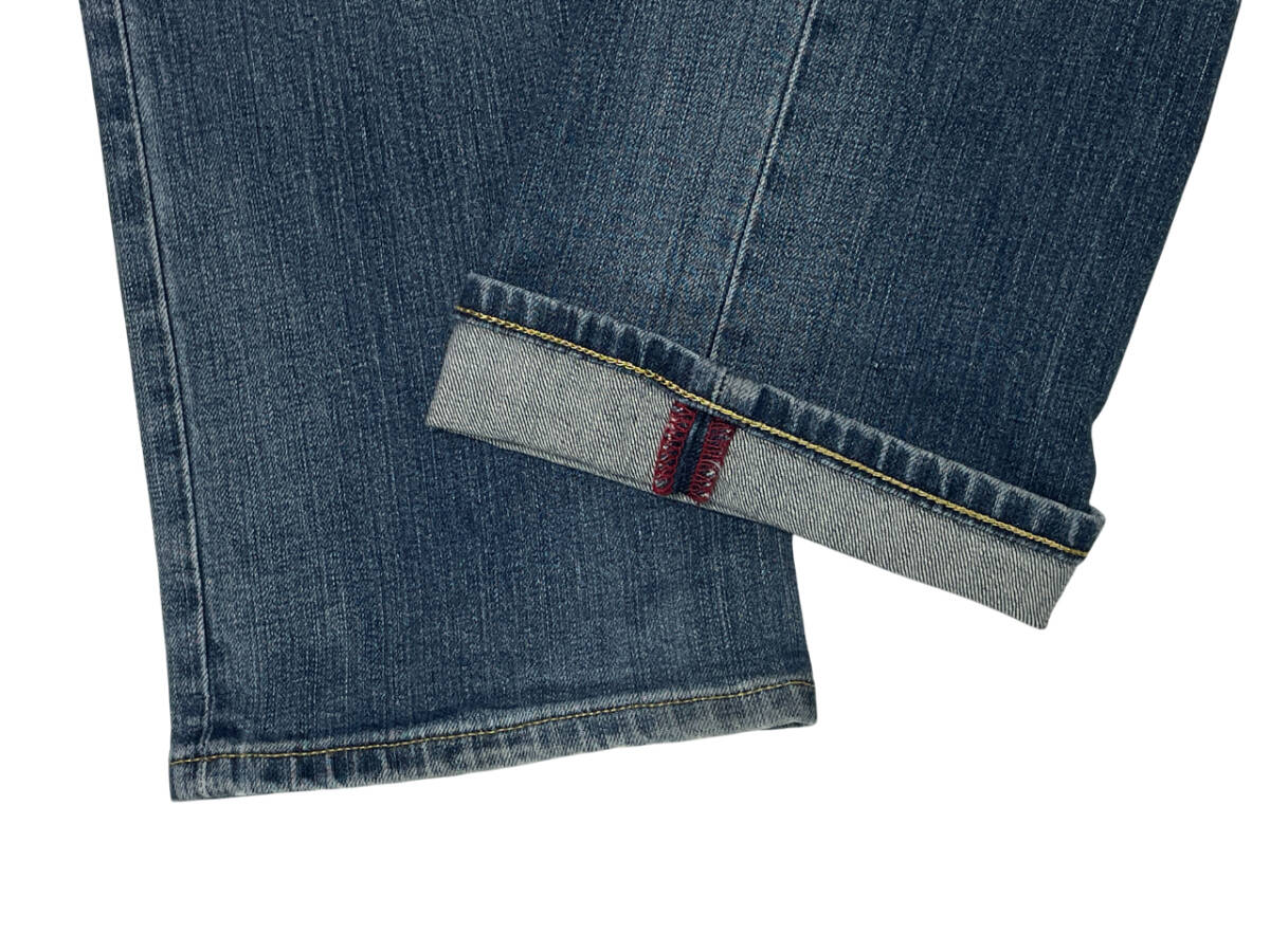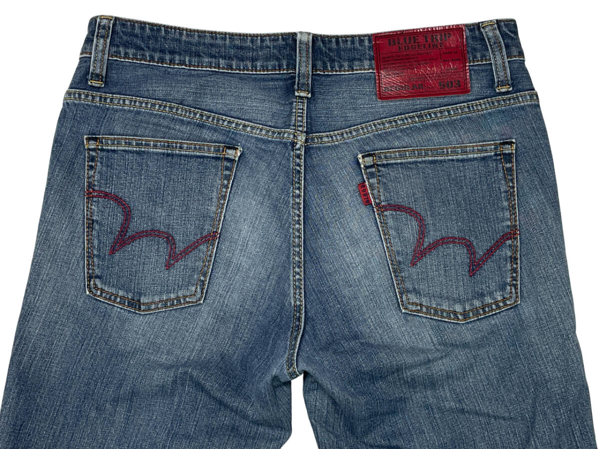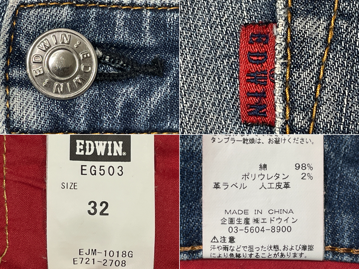 | ブランド:エドウィン 型 番 :EG503 カラー :インディゴ 状 態 :USED エドウィン 503 ブルートリップ エッジライン 日本製 デニムパンツ です。 赤のステッチがインディゴに映えるパンツです。キレイなストレートシルエットで、ストレッチも効いていて履きやすいパンツです お探しの方お勧めの1本です。 ■サイズ:製品表記 W32 ■サイズ:実寸(平置き) ウエスト 43.0cm (×2=約86cm) W34相当 股下 80.0cm 股上 25.0cm ワタリ 30.5cm すそ幅 21.0cm | ||