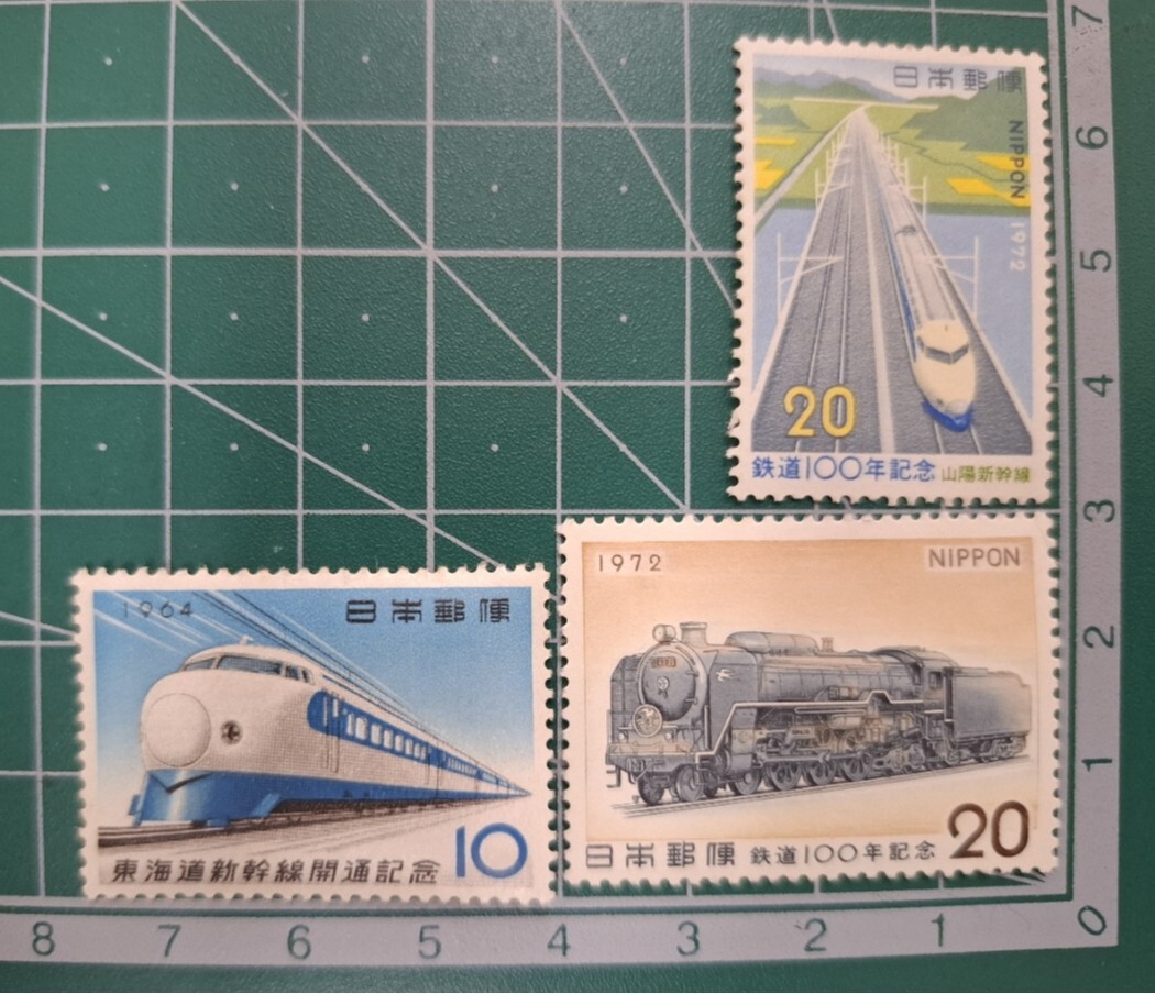 【貴重】新幹線 機関車 切手 3枚セット 東海道新幹線開通記念 鉄道100周年記念 1964年 1972年 10円 20円