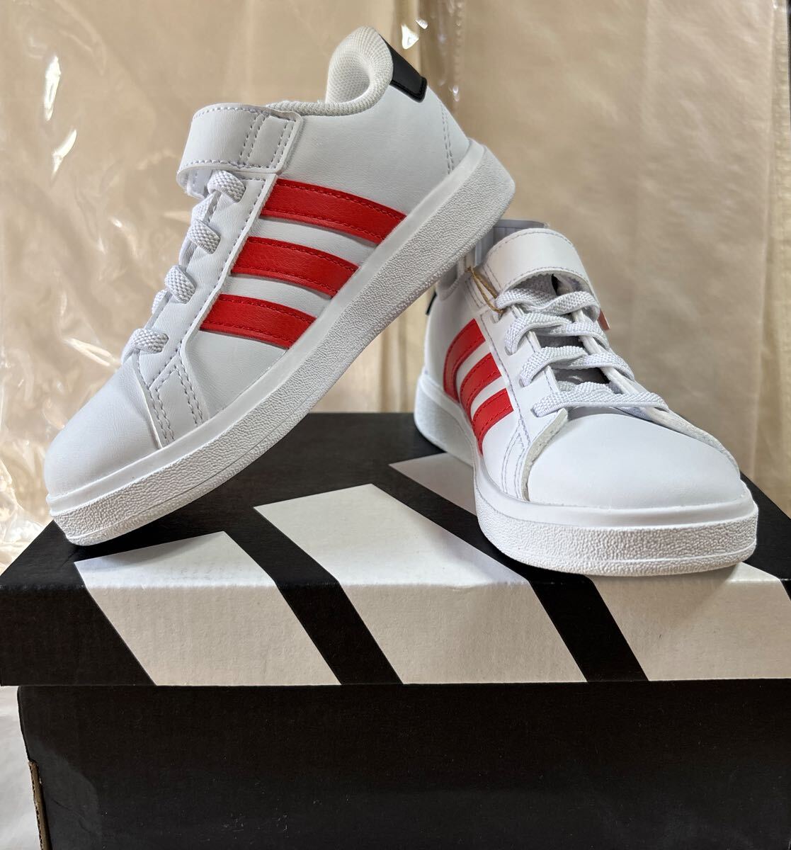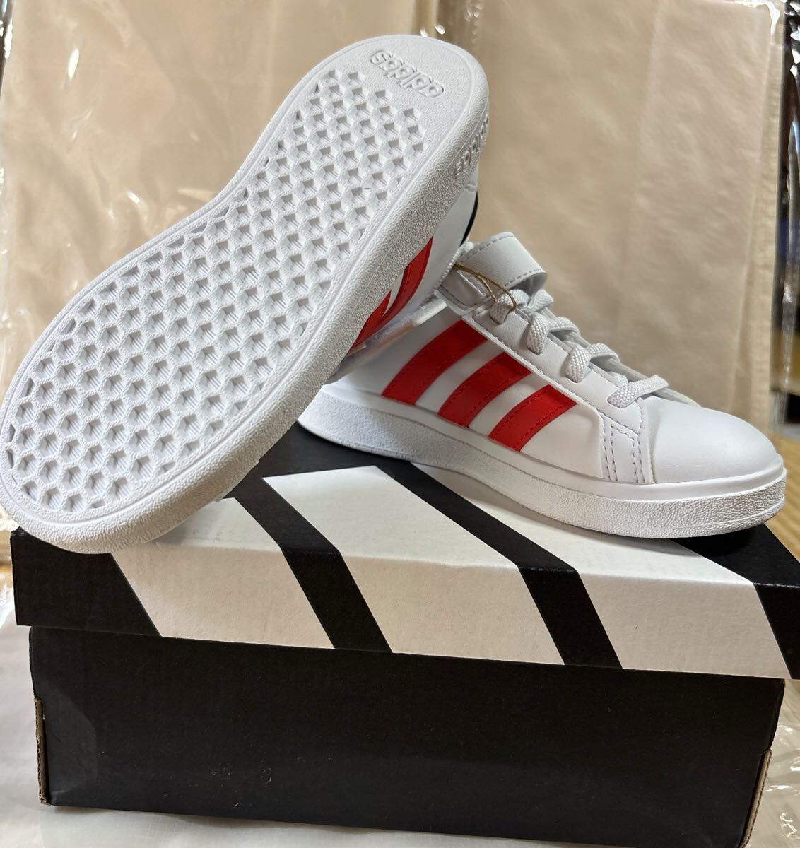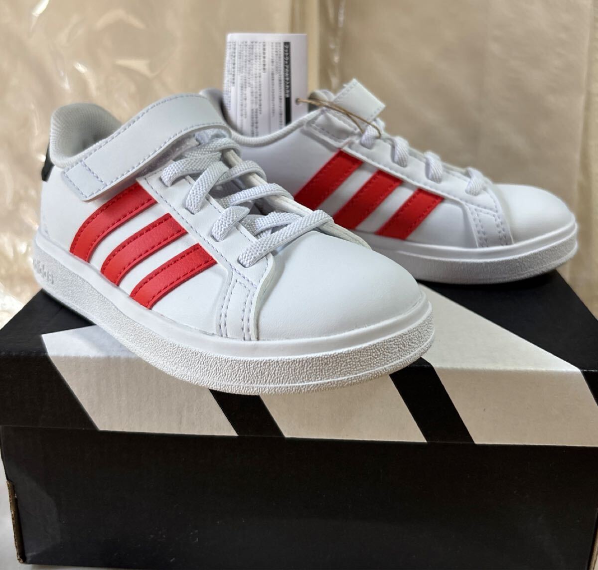 子どもだって、スニーカーをコレクションしていいはず。早すぎることなんてない。最初の一足は、このキッズ用グランドコートアディダス シューズで決まり。頑丈でありながら柔軟に曲がるラバーカップソールが、一歩ごとのステップと飛び跳ねる足元をサポートする。自分でシューズを履きやすいように、伸縮するシューレースと、足をしっかり固定できる面ファスナー式ストラップを装備。キッズがいつも履きたくなる、きっと休む暇もない一足。