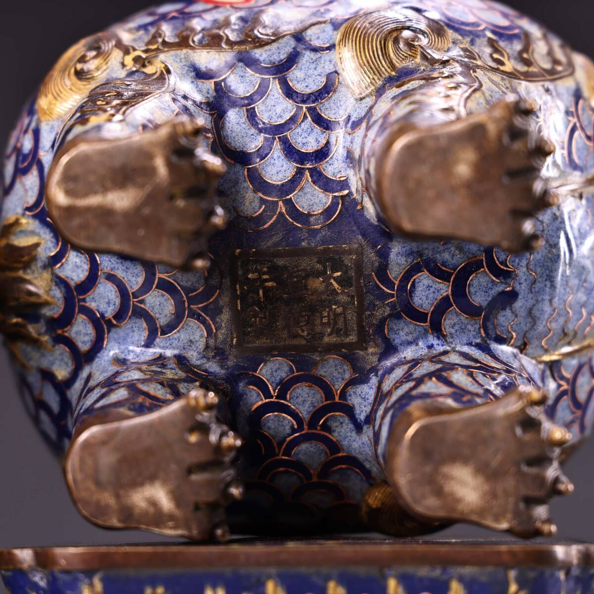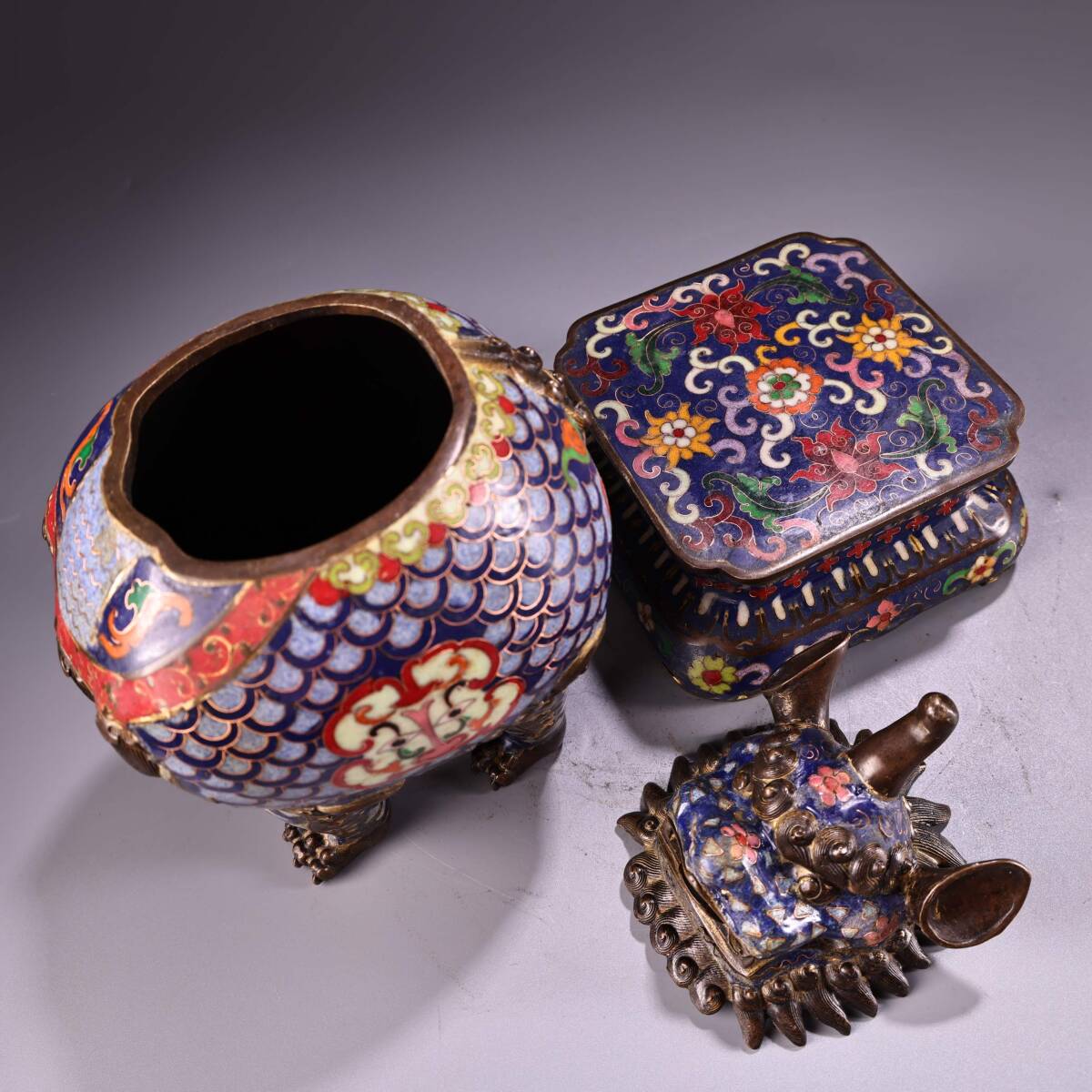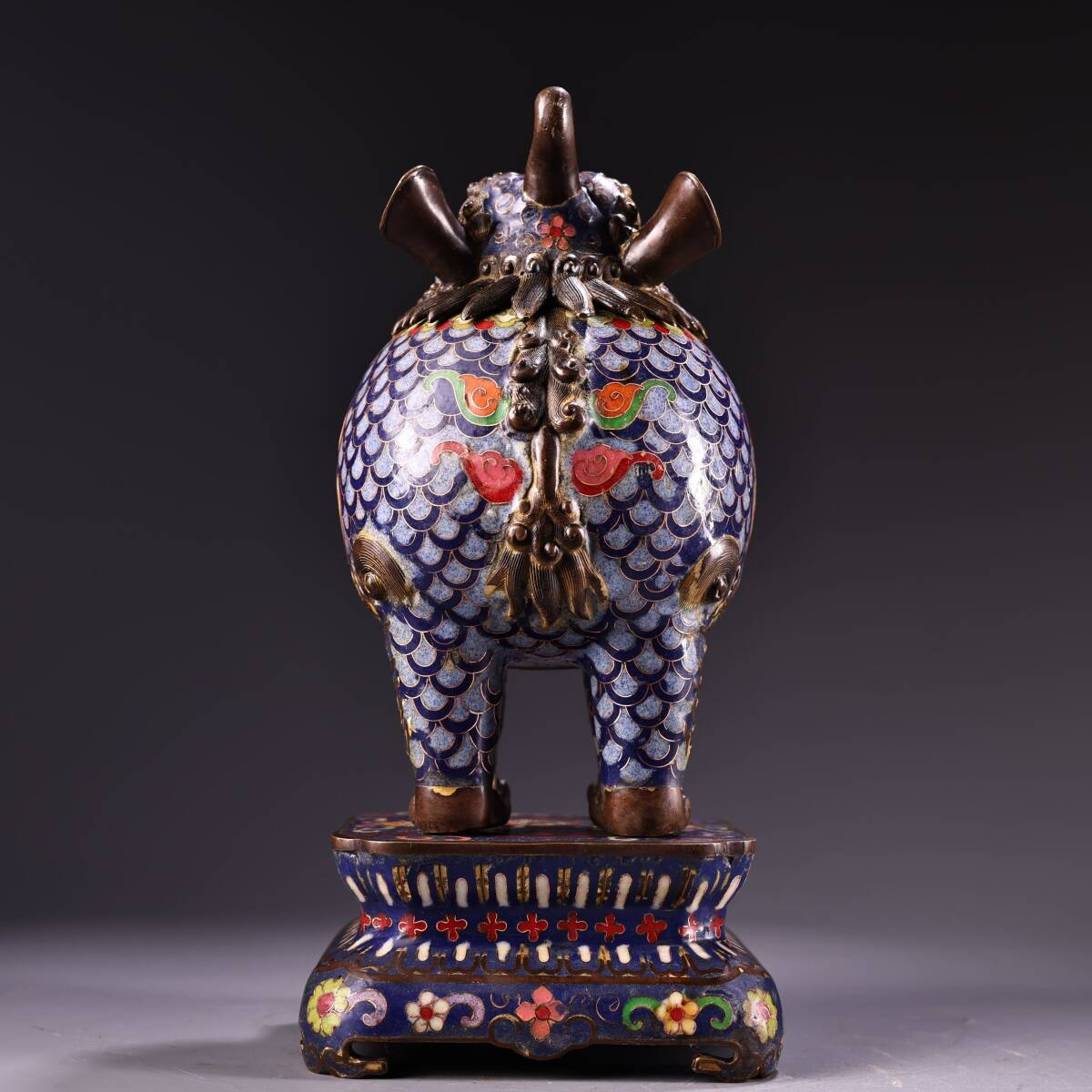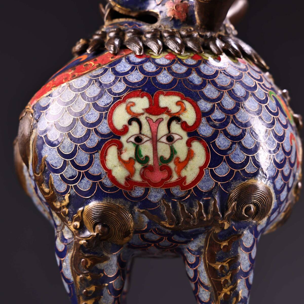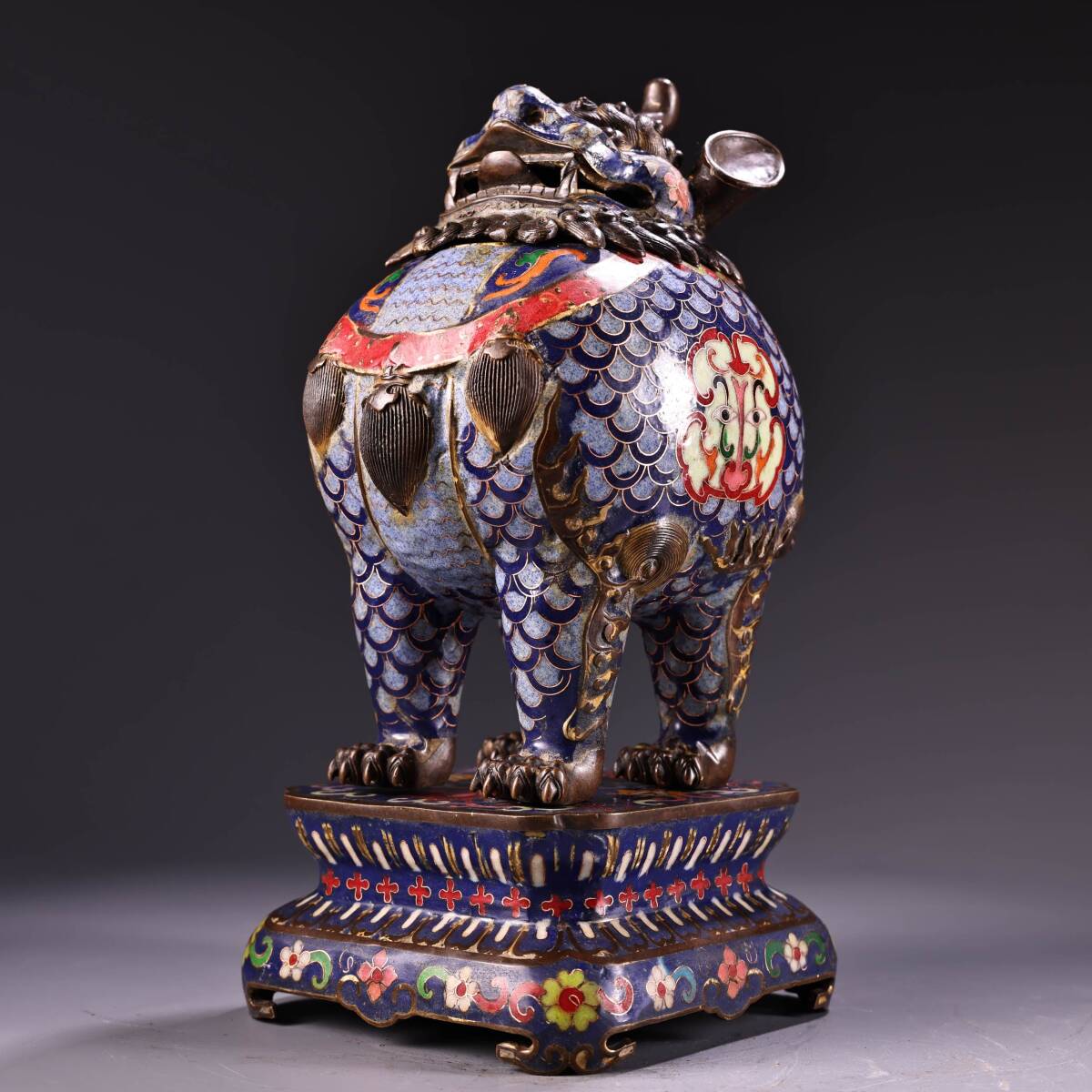 唐物 大明 宣德年製 純銅 全銅 高浮彫鏨刻 つねる絲琺瑯 景泰藍貔貅 獸形熏香爐 香道具 銅製 銅器 極細工 中国古玩 骨董品 古美味 D68