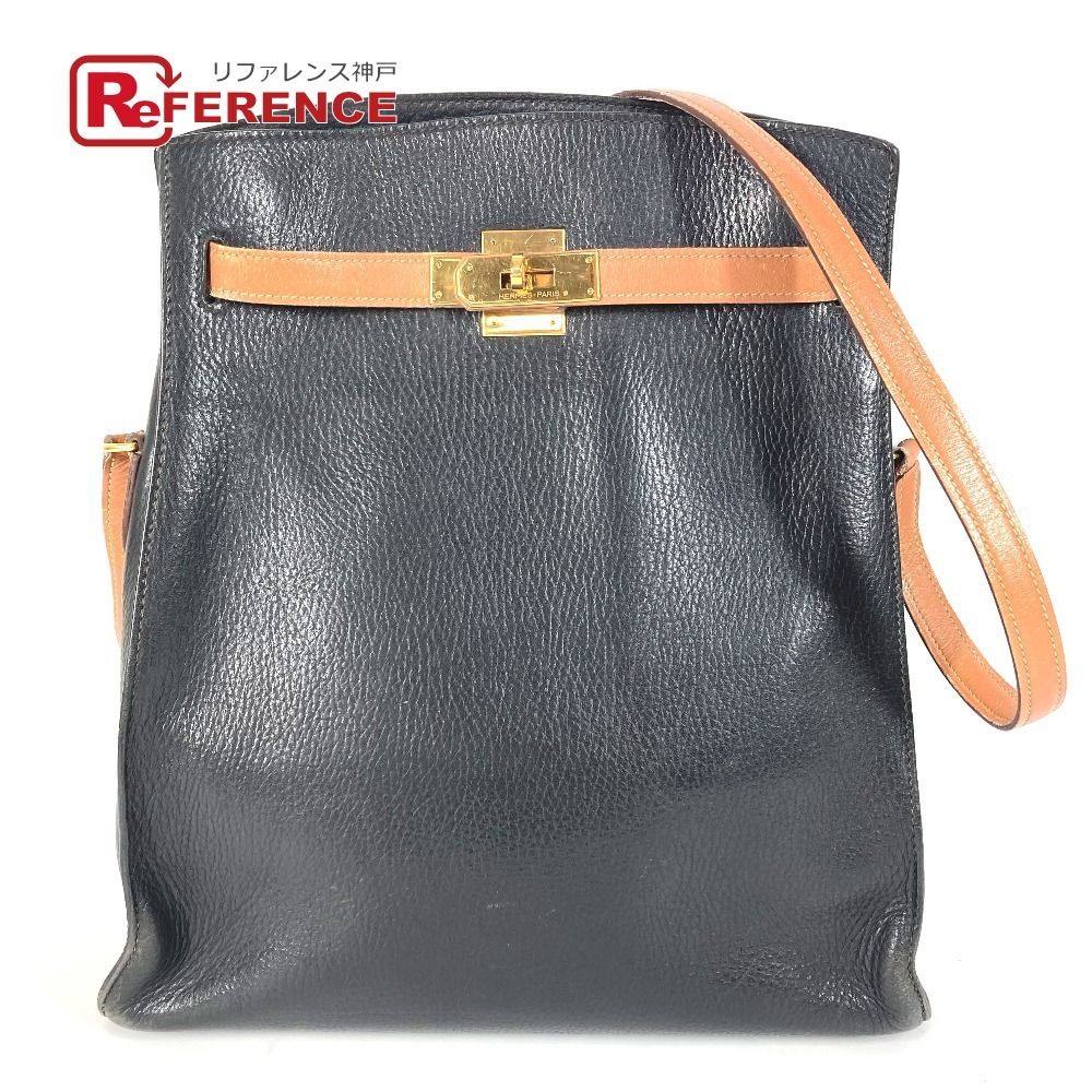 HERMES エルメス ケリースポーツGM ケリースポーツ 肩掛け バイカラー ヴィンテージ ショルダーバッグ ブラック レディース【中古】.