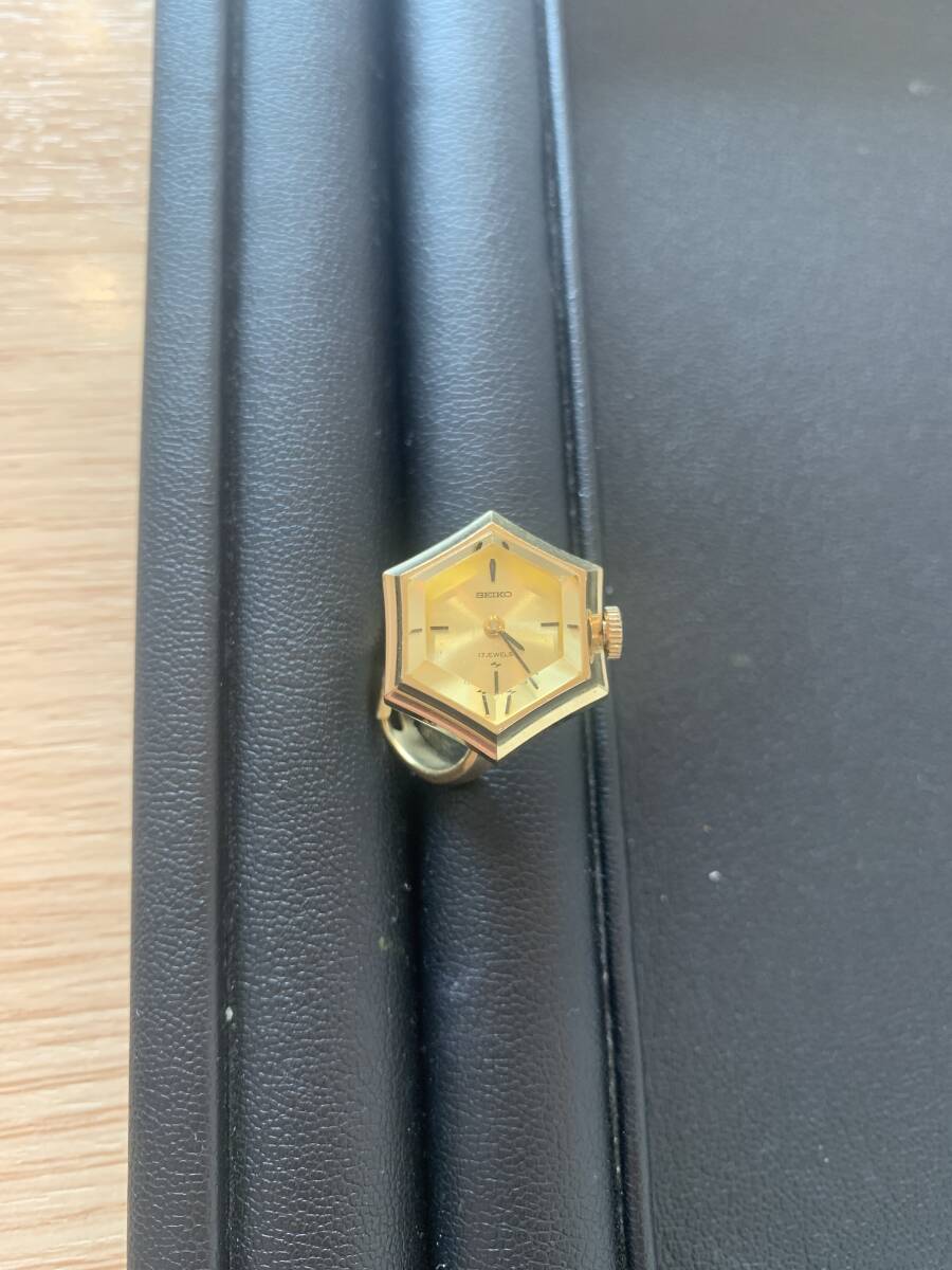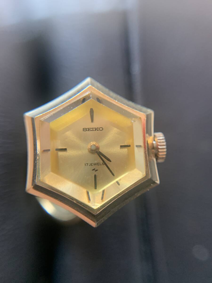 *1-6507 中古品 SEIKO セイコー 11-768A リングウォッチ 手巻き 17石 6角 ゴールド系 指時計 ヴィンテージ レディース 動作〇 現状品
