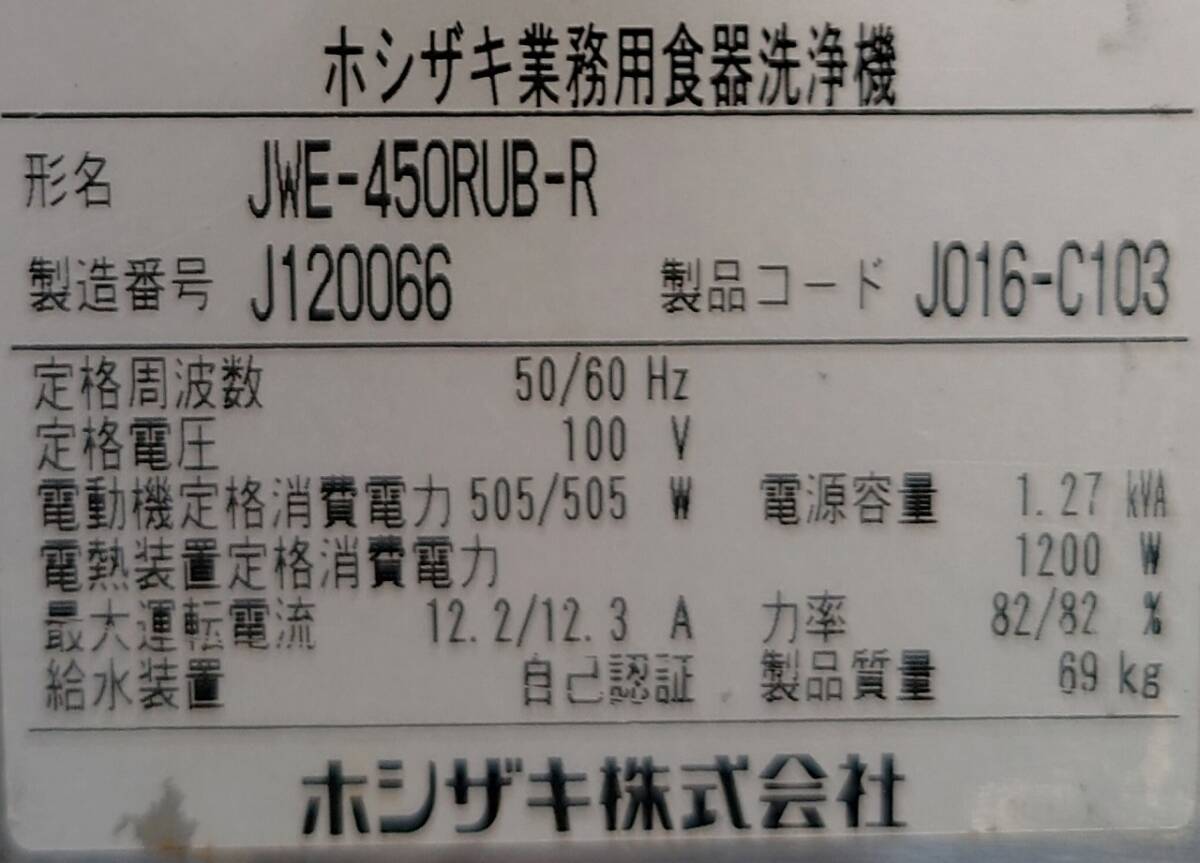 | 食器洗浄機 3相200v 50/60hz ホシザキ JWE-450RUB3 | |