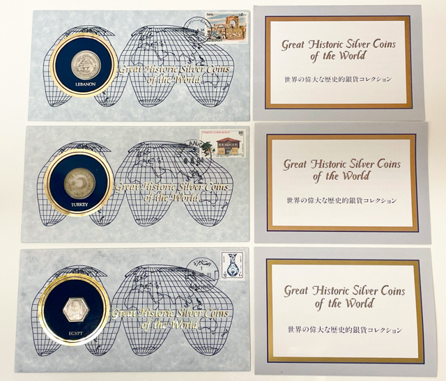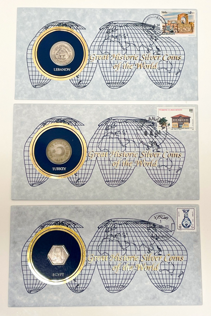 フランクリンミント 世界の偉大な歴史的銀貨コレクション レバノン 50ピアストル トルコ 1リラ エジプト 2ピアスタ 銀貨 コイン 海外 切手