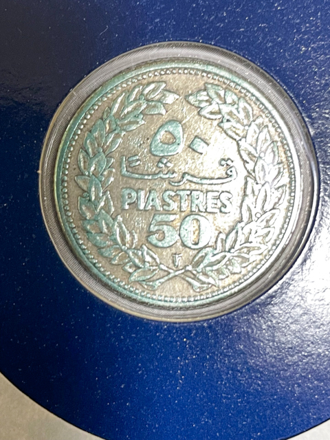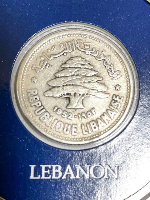 フランクリンミント社 世界の偉大な歴史的銀貨コレクション レバノン 50ピアストル貨 銀貨 希少 レア 古銭 1952年 ヒマラヤスギ *解説書付き
