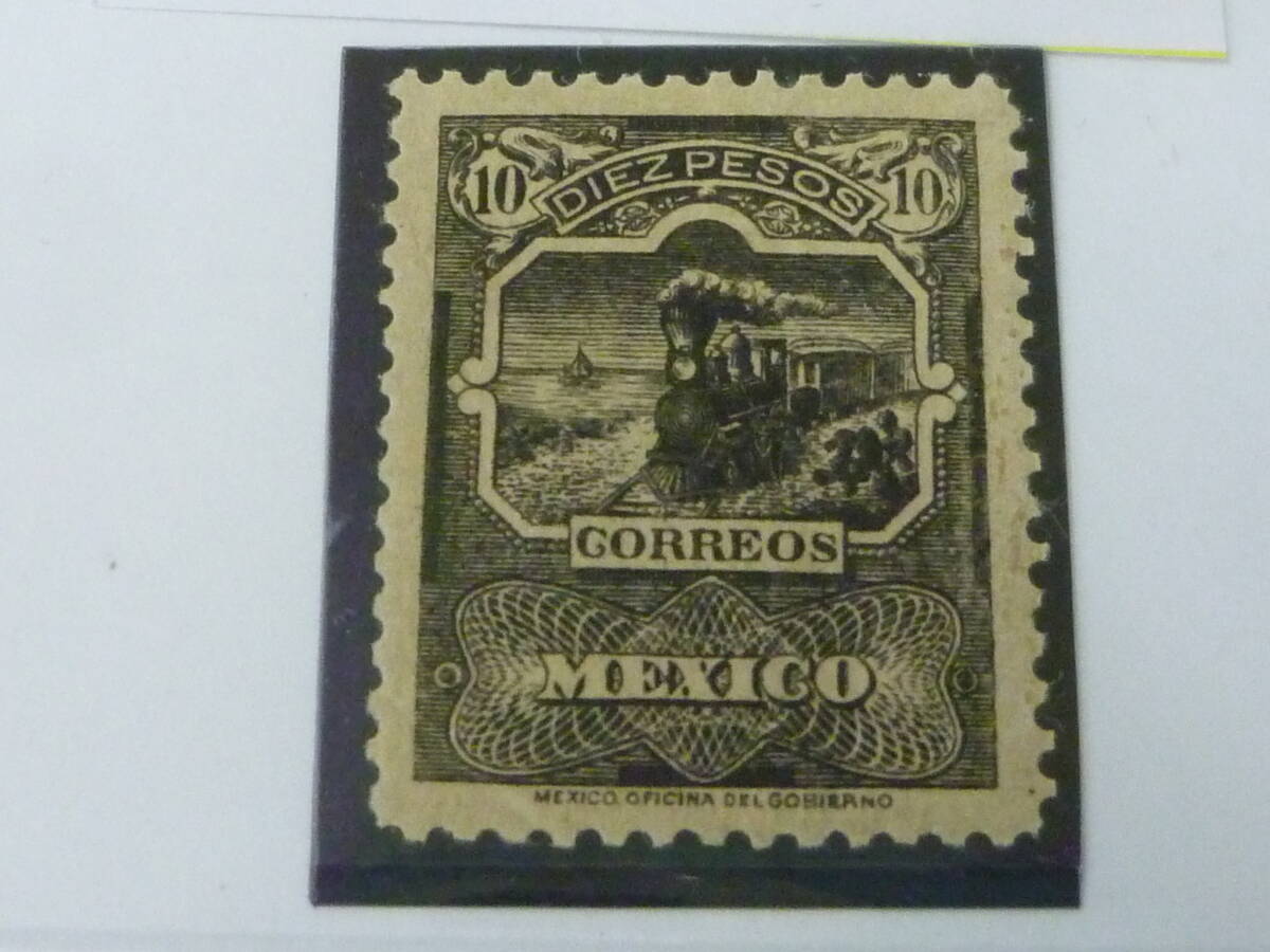 25 M 鉄道№7 メキシコ切手 クラシック 1895年 黒プルーフ SC#256 「汽車 図」 10p LH