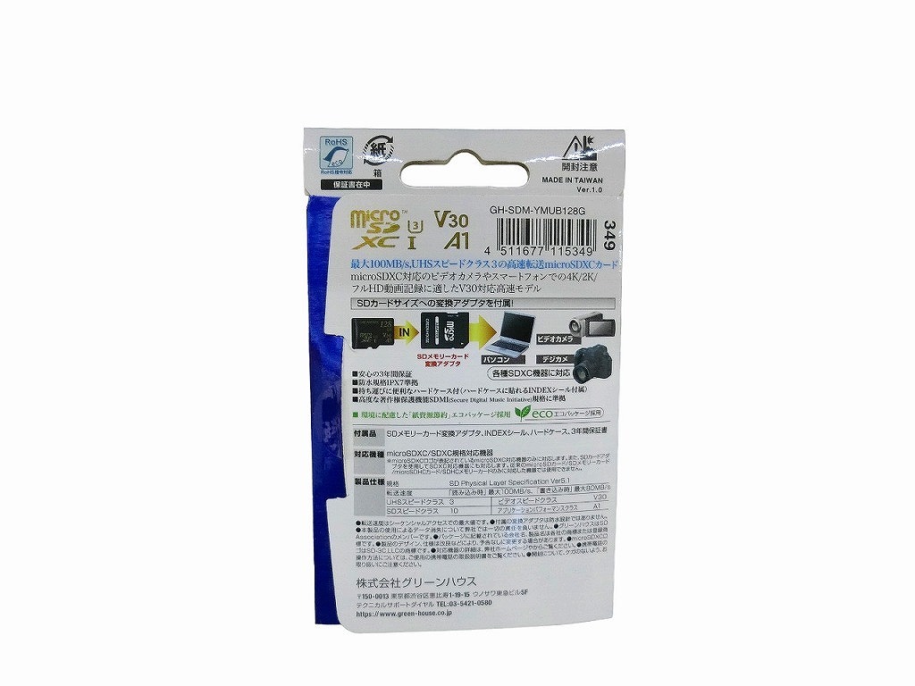 【未使用】 グリーンハウス GREEN HOUSE microSDXCカード GH-SDM-YMUB128G