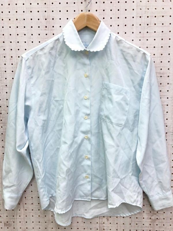 IL SUFFIT イルサフィット ガーリー オールド レトロ カントリー 古着 フリルカラー ブラウス 日本製 レディース サイズ11 水色