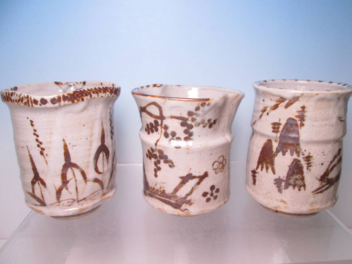 ☆お料理屋さんの器 唐津 源 作 鉄絵 筒向付 大振り3種 三客 茶懐石/割烹/日本料理