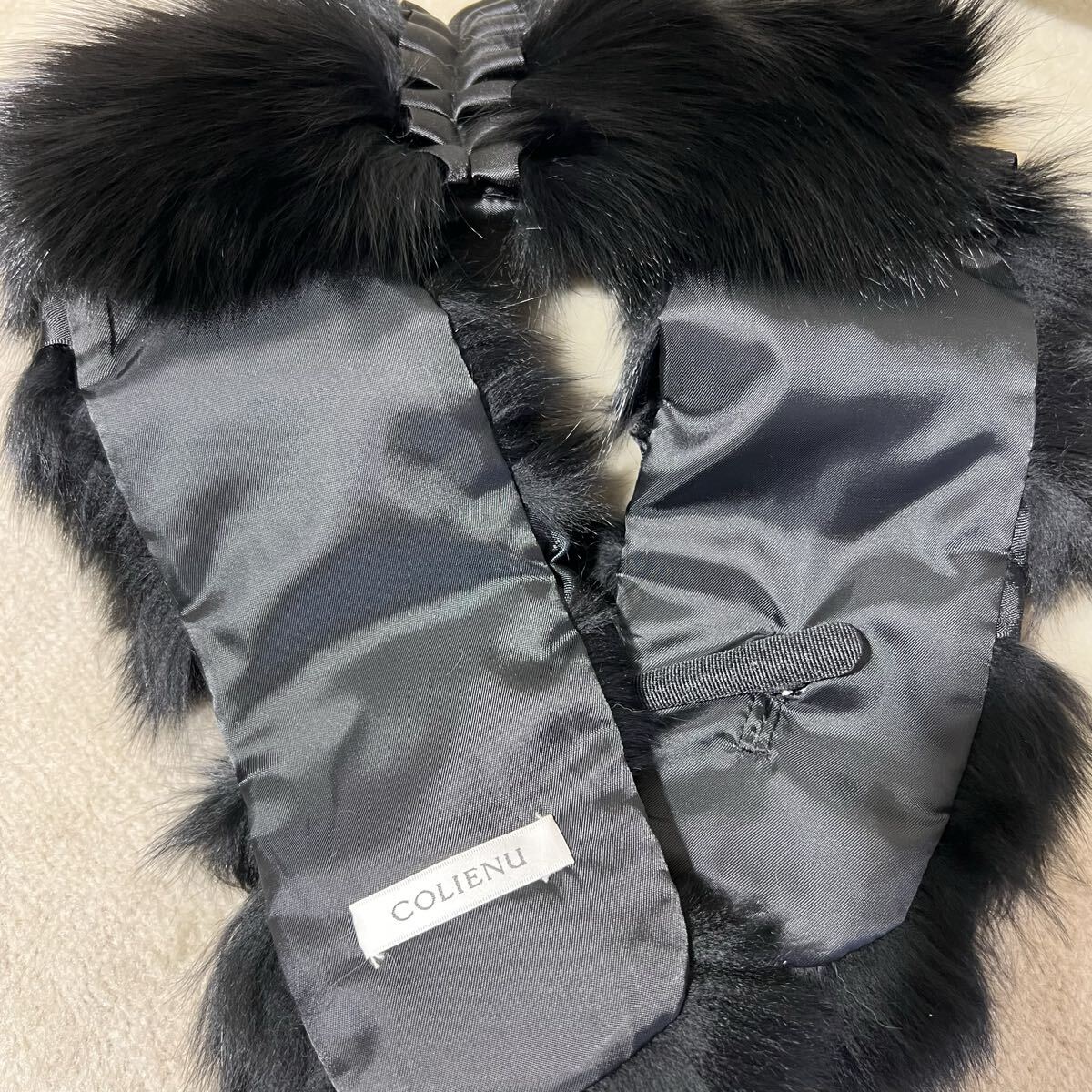 商品名:C2844 COLIENU コリエヌ フォックスファー ティペット 黒 クリップ付き リボン飾り 品質タグ無し 素材特定不可 ユーズド