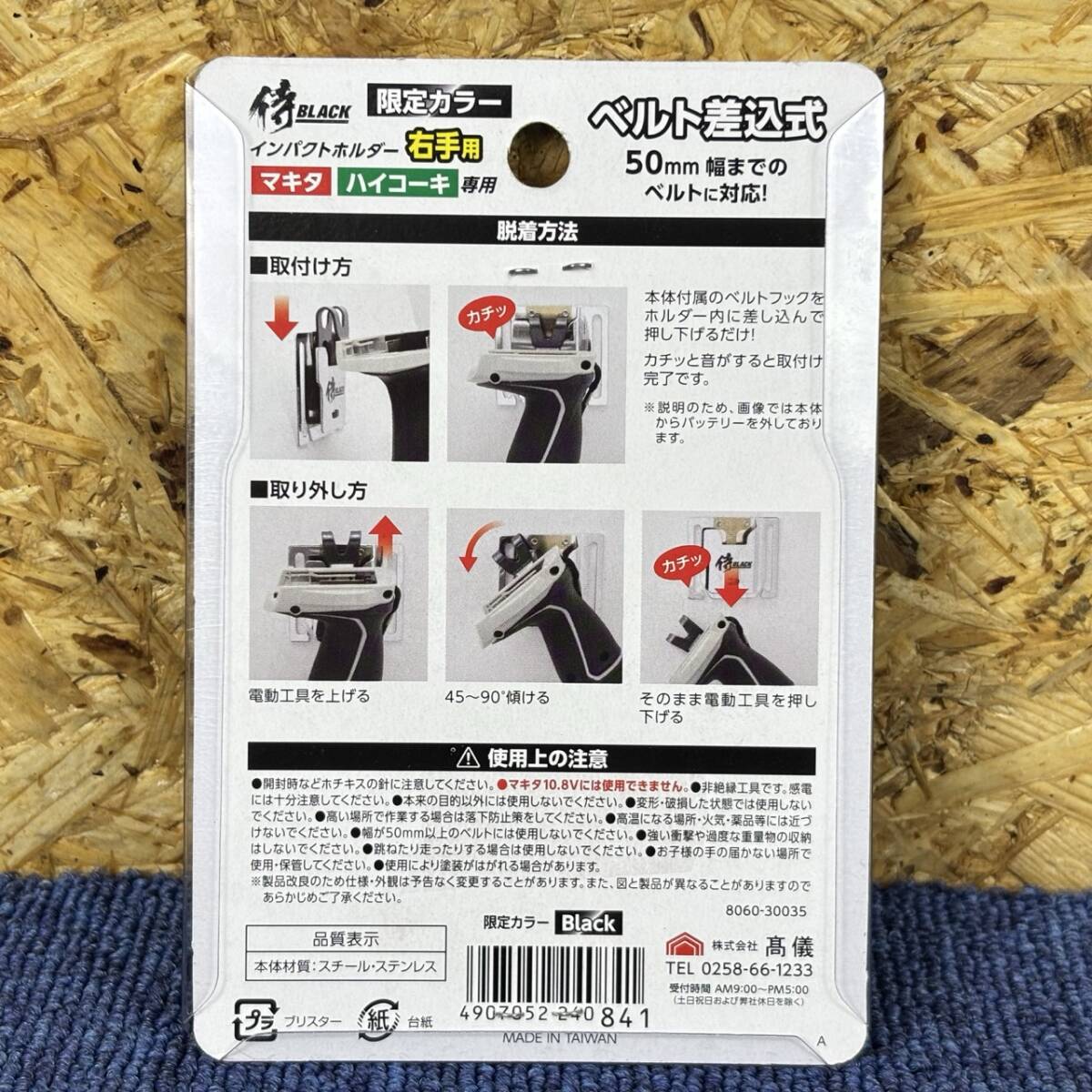 【新品未使用品】高儀 侍BLACK/ブラック インパクトホルダー 右手用 限定カラー ブラック 30035 マキタ/ハイコーキ専用 腰道具 A991