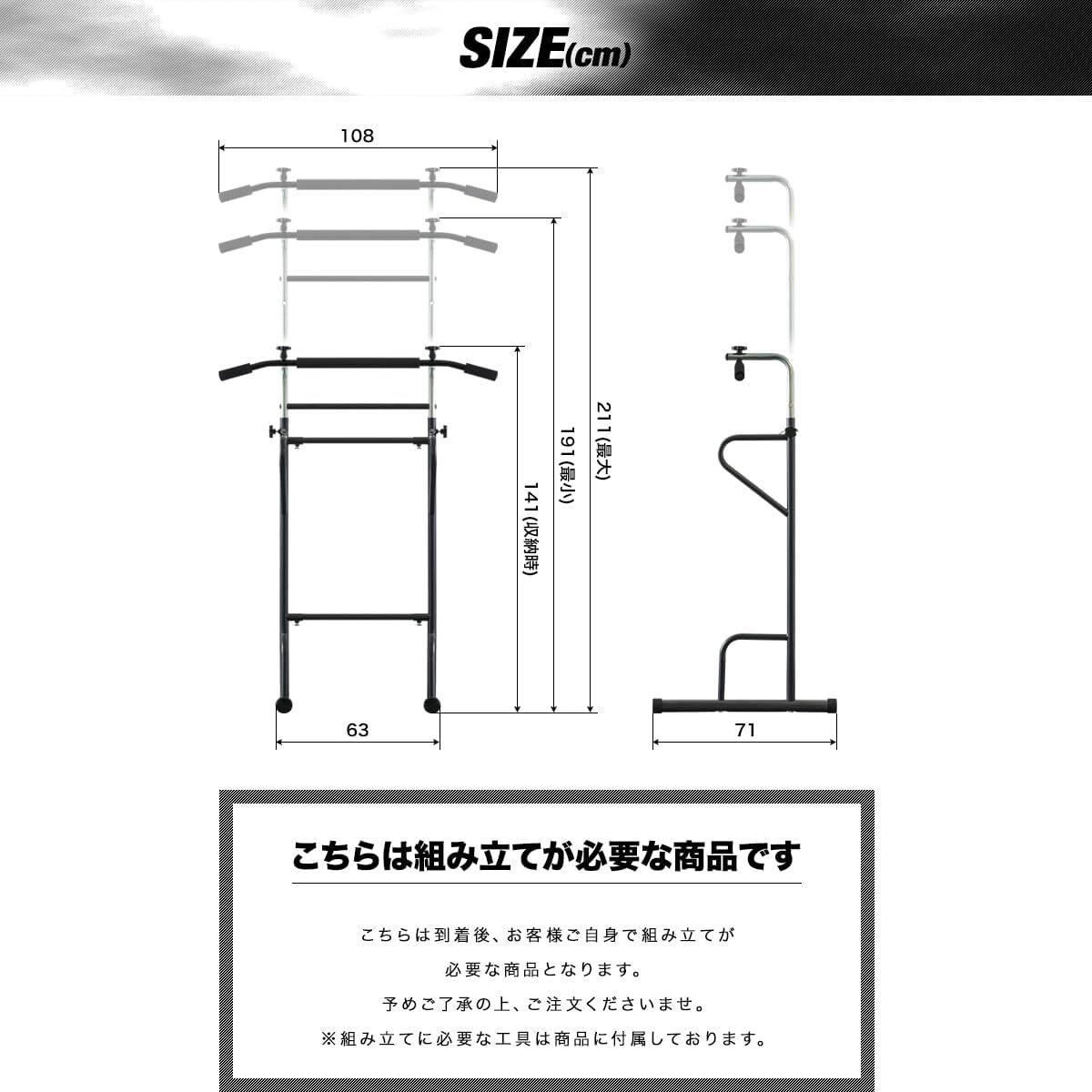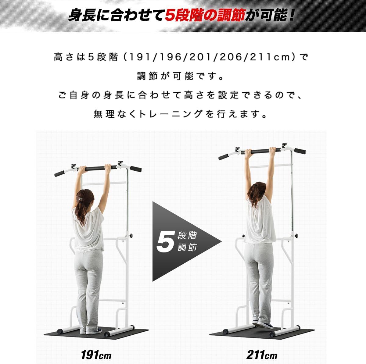 ホワイト色 FIELDOOR ぶら下がり健康器 懸垂マシン マルチジム ライト 高さ調節5段階 191cm~211cm 耐荷重80kg 背筋伸ばし 健康