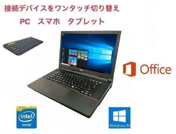 【サポート付き】富士通 A553 Windows10 Office2016 SSD:480GB 新品メモリー:4GB 無線LAN搭載 & ロジクール K380BK ワイヤレス キーボード