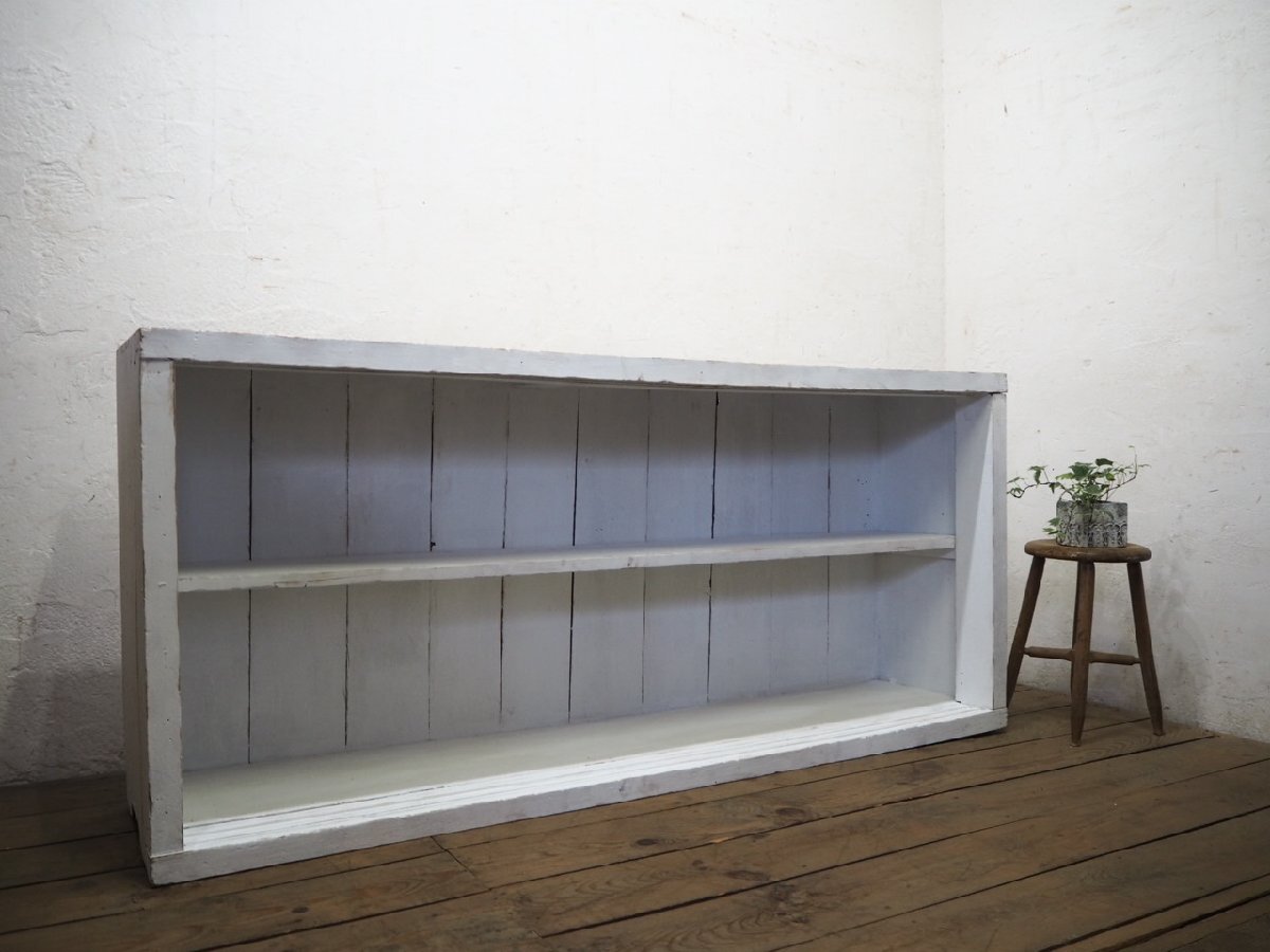タ荷Q0603◆H80cm×W178cm◆可愛い白ペンキの大きい木製飾り棚◆収納棚 食器棚 キャビネット オープンラック レトロ アンティークR(ヤE)松