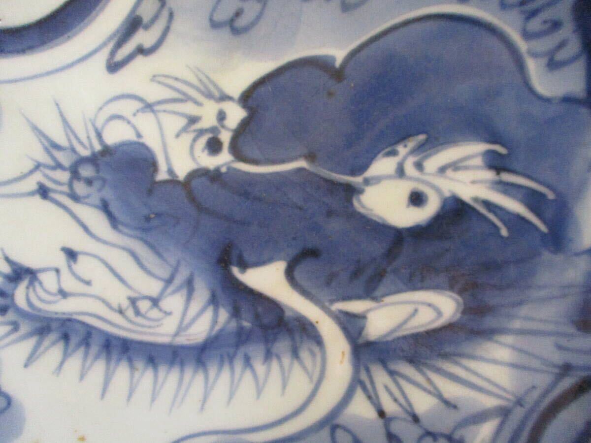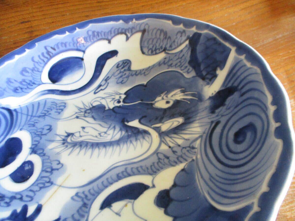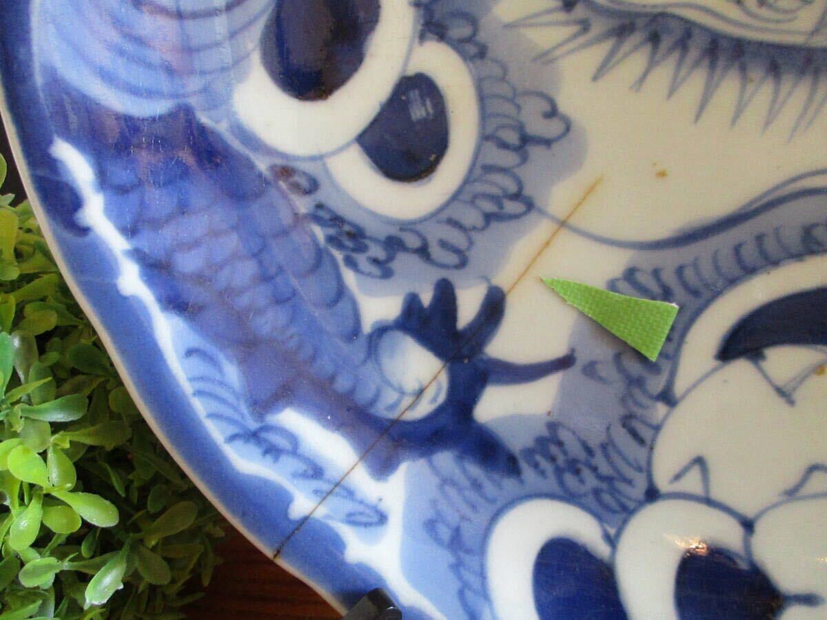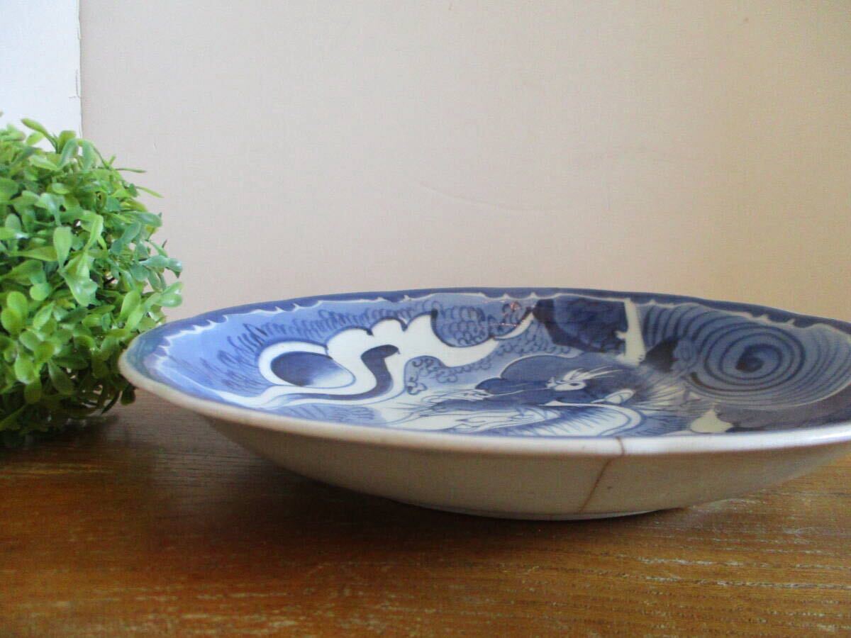 【旧家蔵出・希少】陶器 染付 龍紋様 大皿 飾皿 直径約29cm プレート ※貫入あり 龍の絵 皿 迫力満点 アンティーク ヴィンテージ 入手困難 | |||