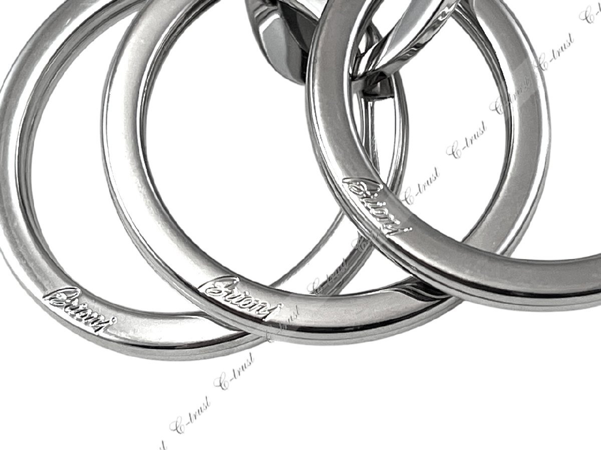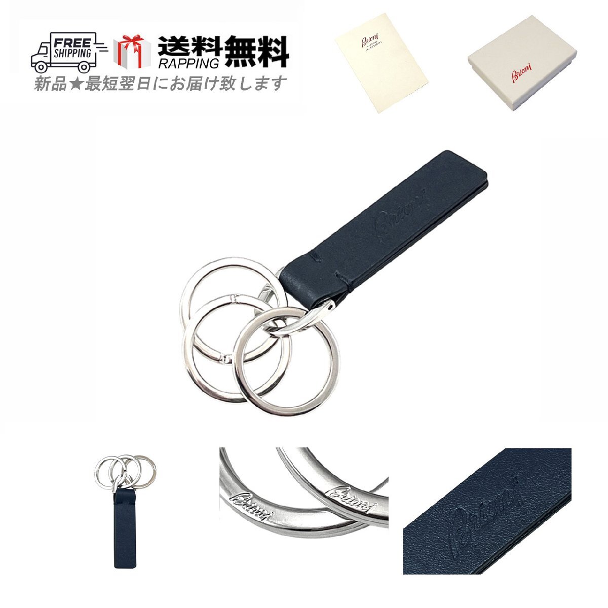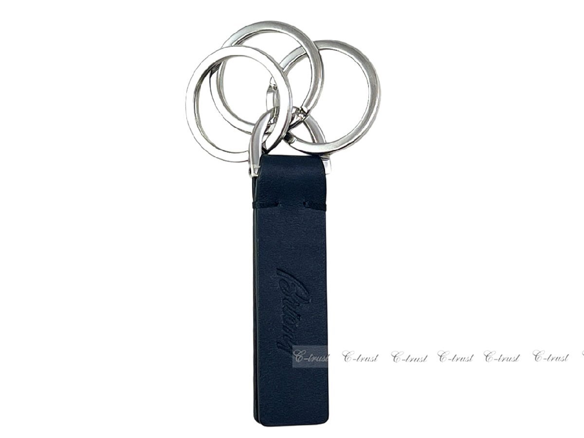L645.. Brioni ブリオーニ キーホルダー キーケース 3 キーリング レザー タグ ロゴ イタリア製 ★ 4010 ネイビー