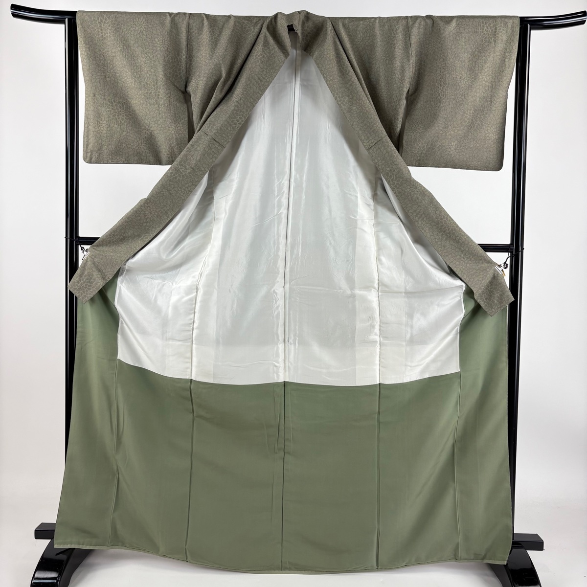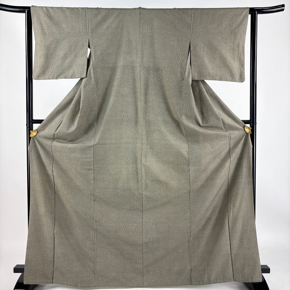 | 紬 秀品 菊 灰緑 袷 身丈169 裄丈62.5 S 正絹 【中古】 |