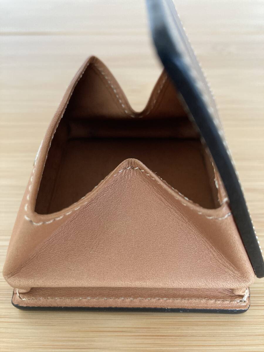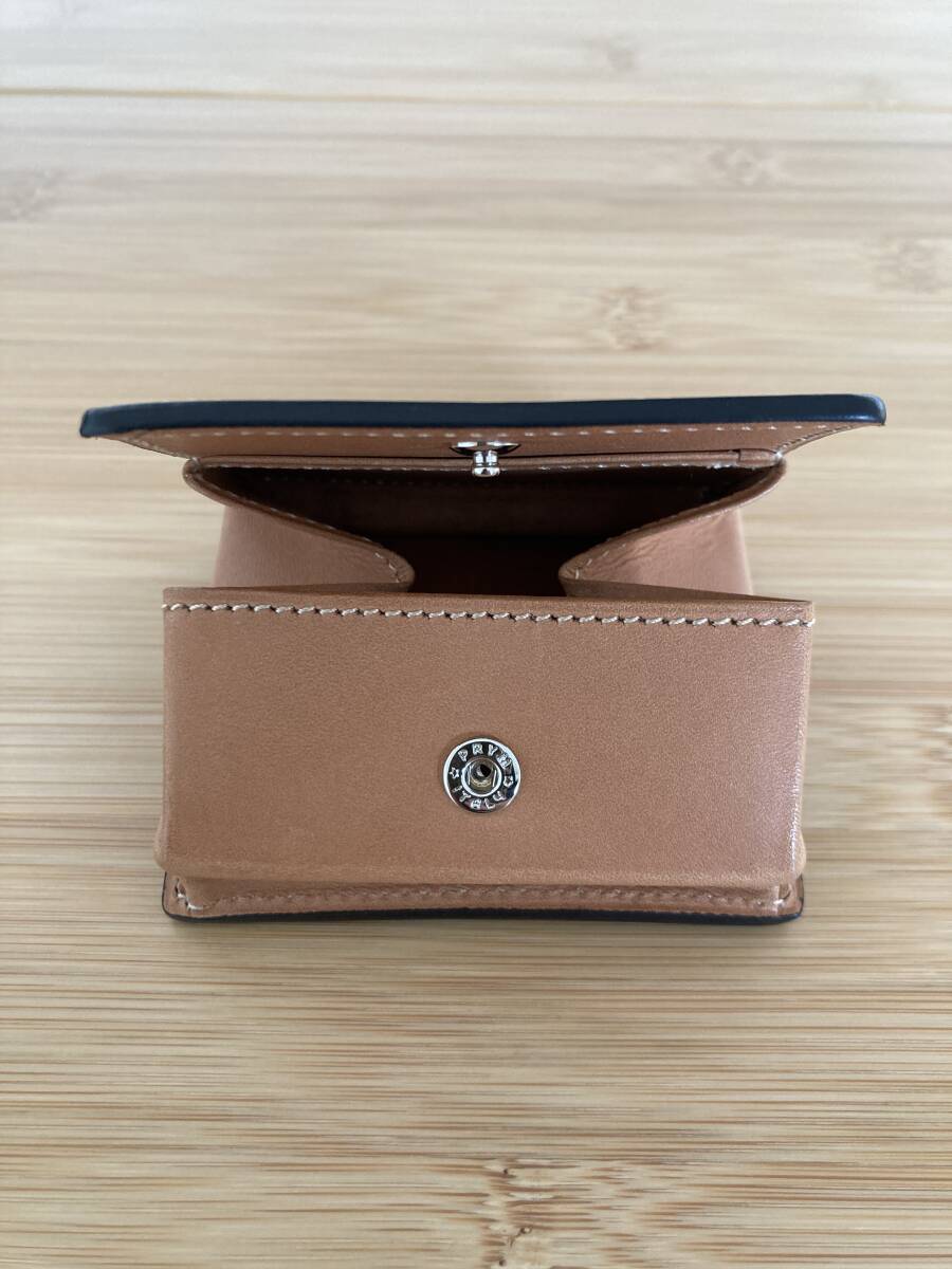 ・小銭入れの素材は、表と裏の黒い部分はブライドルレザーで、それ以外の部分はヌメ革となっております。