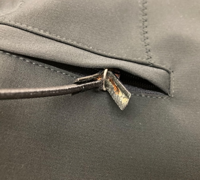 【コンディション】 左袖に色ヤケ(変色)、左下ポケットのファスナー紐のレザーが 剥がれています(写真8)。 【カラー】ブラック 【素材】 アセテート他 【サイズ】 42 【着丈】 約60.8cm 【肩幅】 約40.8cm 【身幅】 約45cm 【袖丈】 約61.2m |