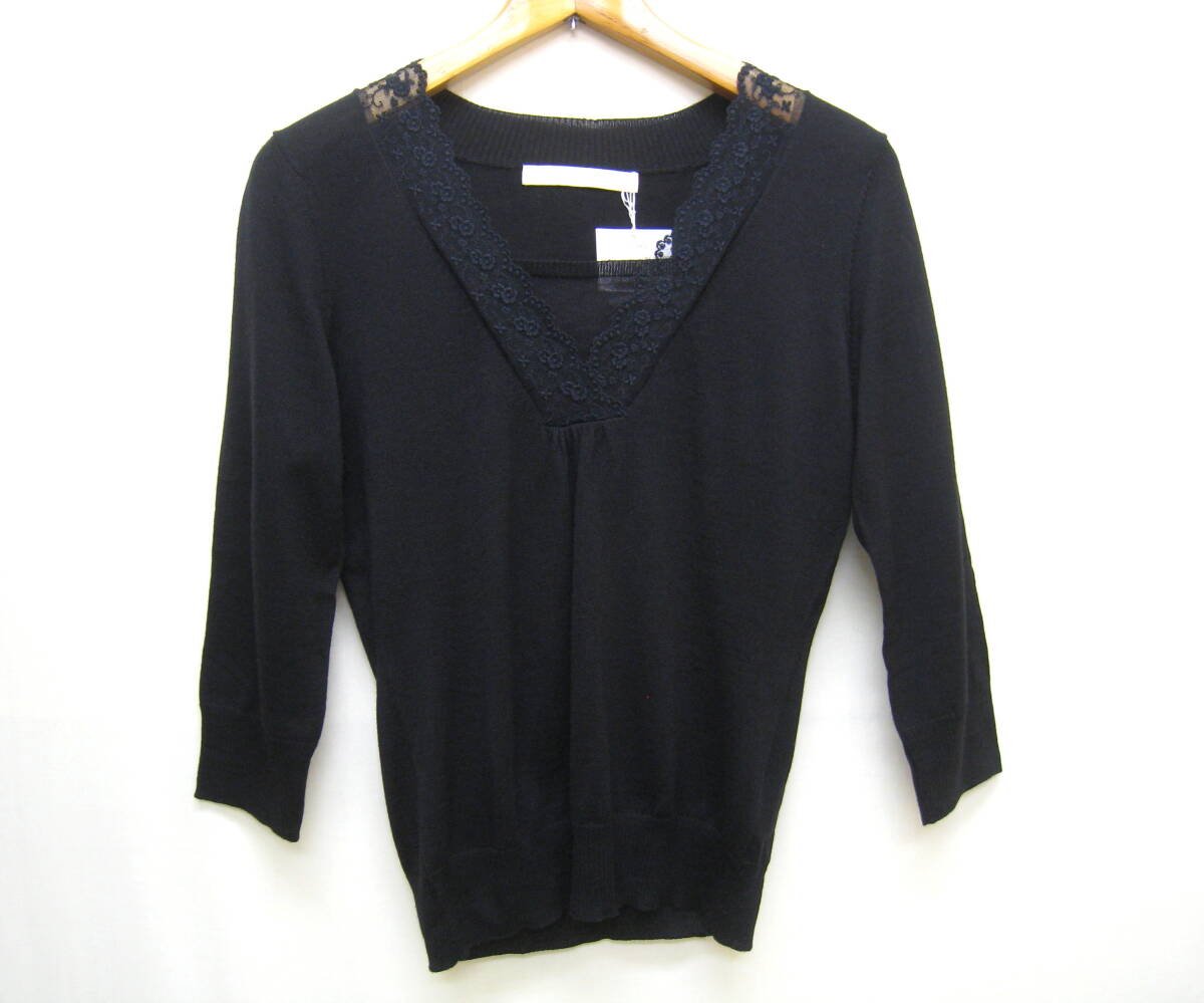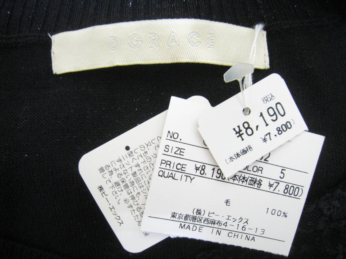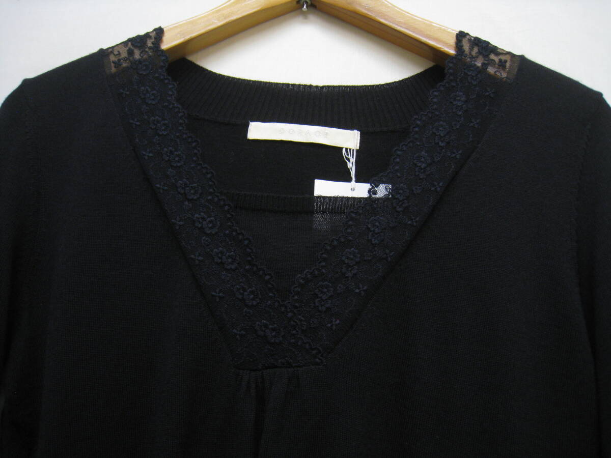 ★新品◆DGRACE ディグレース ウール100% 薄手ニット 七分袖 トップス レース使い レディース ブラック★ | ||||