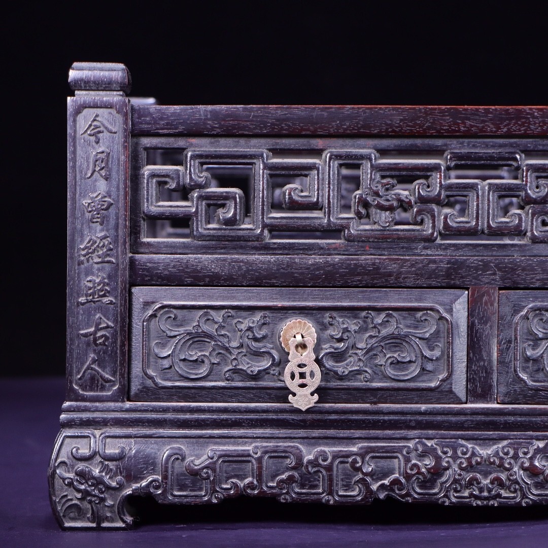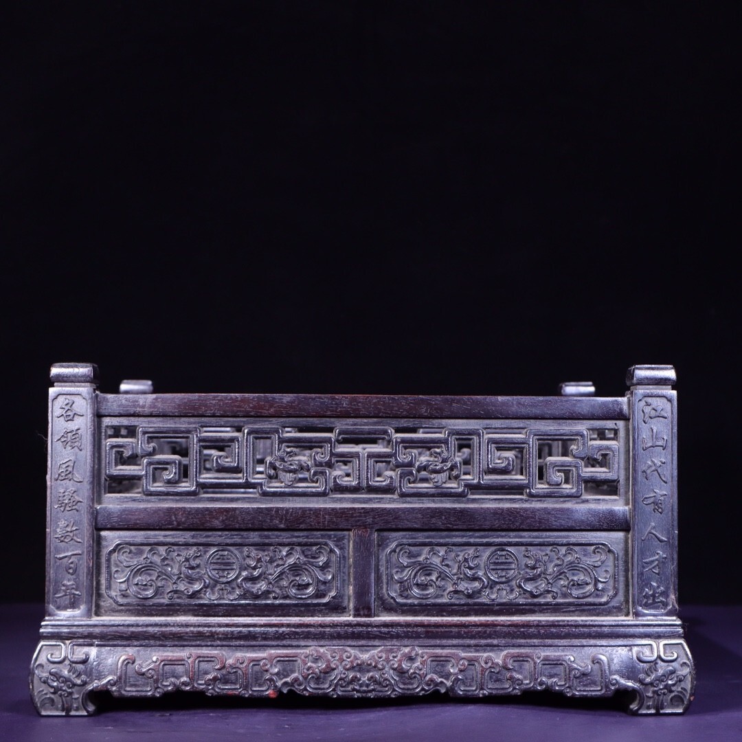 【瓏】老紫檀の木彫 龍紋收納 都承盤 清時代 極細工 手彫り 置物 擺件 古美術 骨董品 蔵出