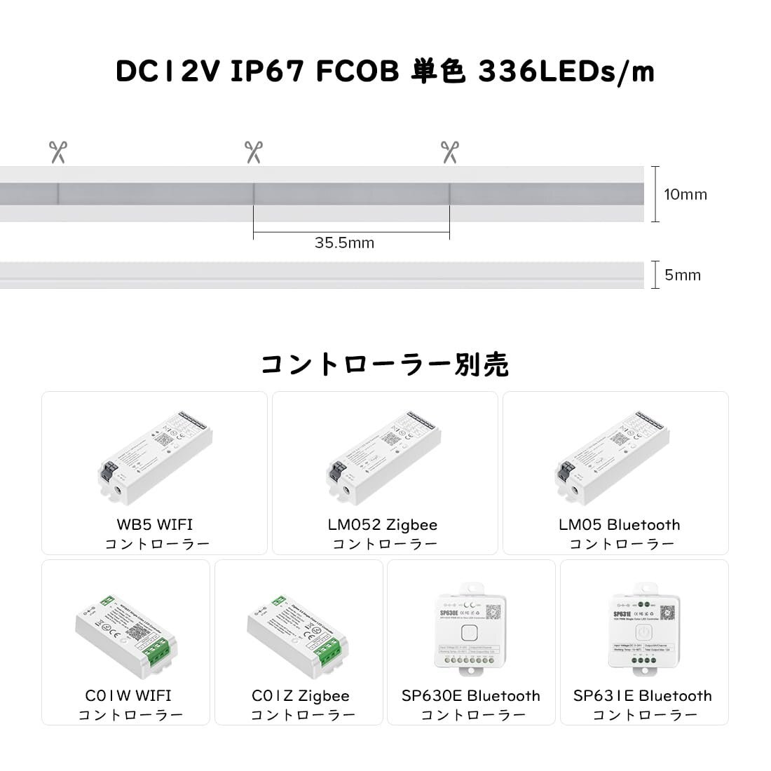 【現品限り】 FCOB 336LEDs/m 高密度 防水 COB LEDテープライト フレキシブル 1680LEDs/5m BT