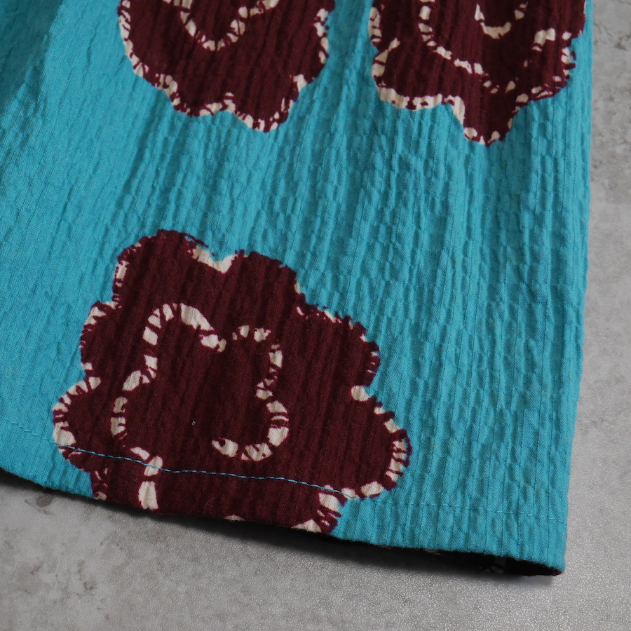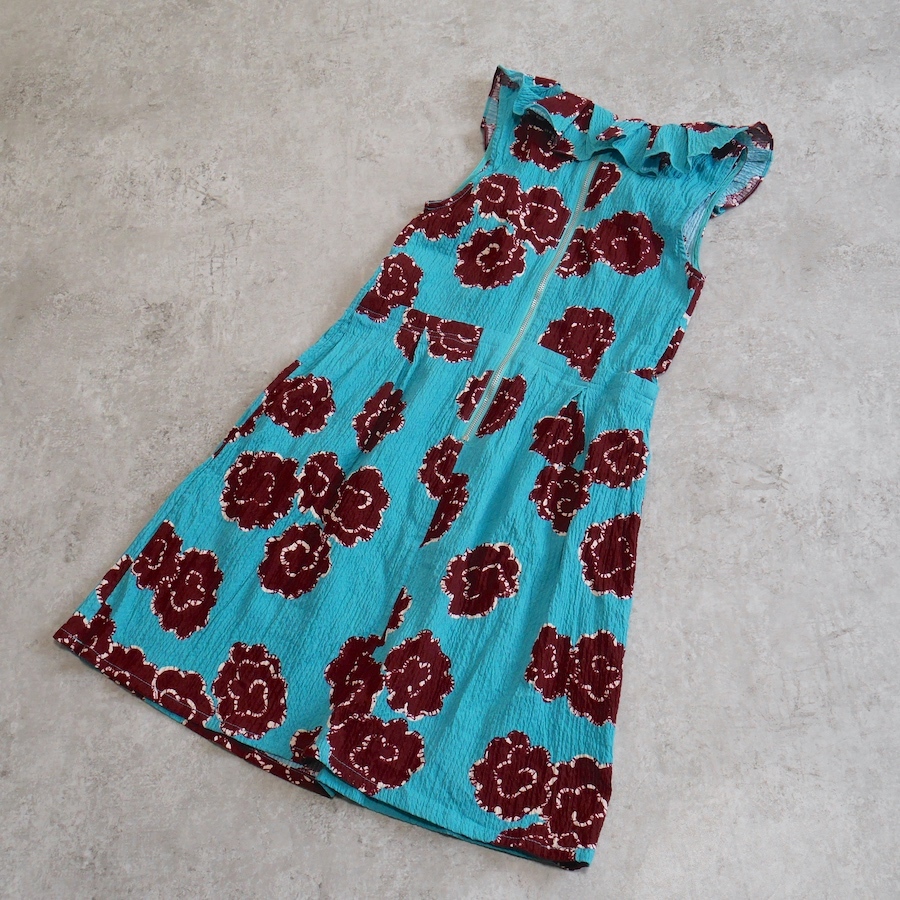 大ぶりな花柄ときれいなターコイズブルーが目を惹くワンピースです。 凹凸感のあるストレッチ生地でほどよく体にフィットします。 リゾート用にもおすすめです。