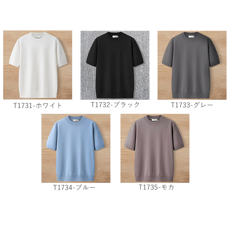 W1731-L 新品 サマー ニット 接触冷感 半袖 Tシャツ メンズ プルオーバー 春夏 盛夏 丸首 クルーネック ハイゲージ カットソー ホワイト