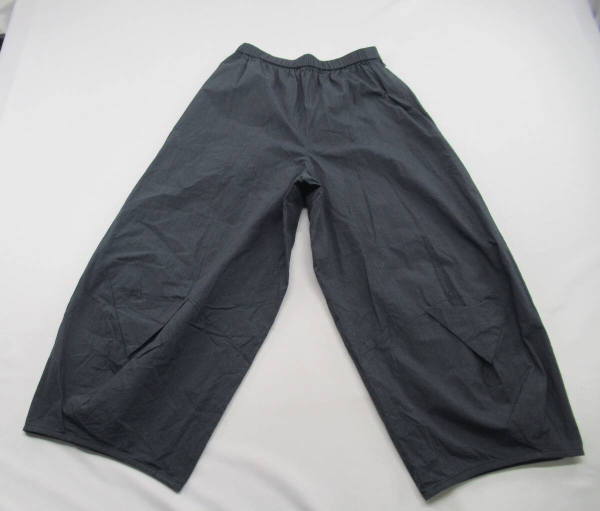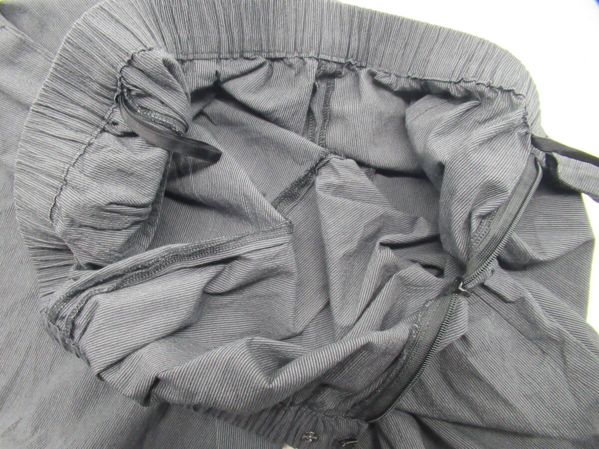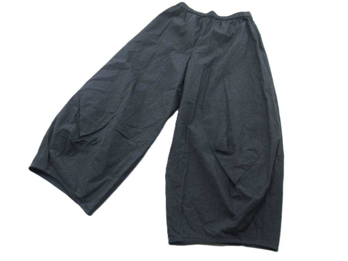 【送900円】866 慈雨 ジウ コットンワイドパンツ サルエル風 バルーン グレー系 ストライプ ウエストゴム ギャザー デザイン 40