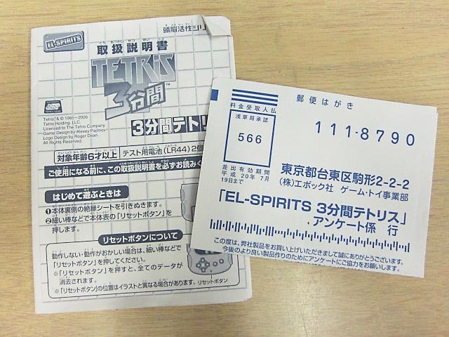 【ジャンク】エポック社 3分間 テトリス ゲームウォッチ 脳トレ TETRIS