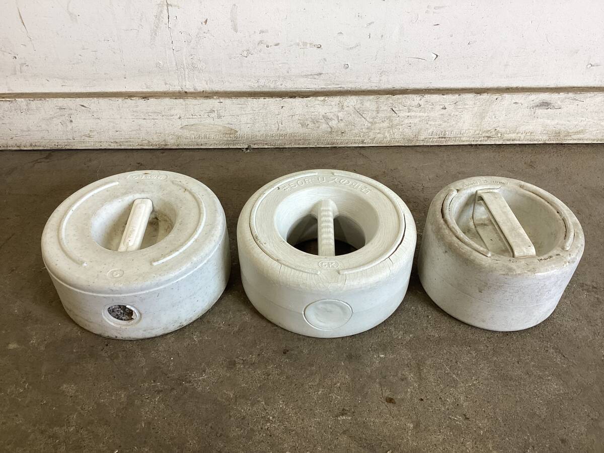 △ v 岐阜発/ プラスチック製/ ウエイト/ オモリ/ 重し/ 漬け物石/ 6kg/ 5kg/ 3.5kg/ 3個セット/ 割れあり/ 現状品/ R7.8/28 △ |