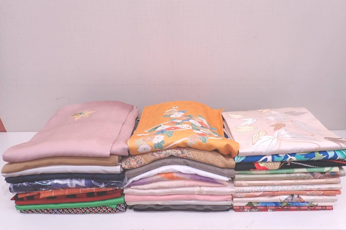 着物や帯、道行などの大量まとめになります。 着用やリメイクの材料などに。 まとめ出品のためすべて広げて状態確認など 出来ておりません。 経年保管品のため、保管臭、煙草臭、汚れ、ほつれなど ダメージがございます。予めご了承ください。 簡易梱包での現状引き渡しとなります。 |