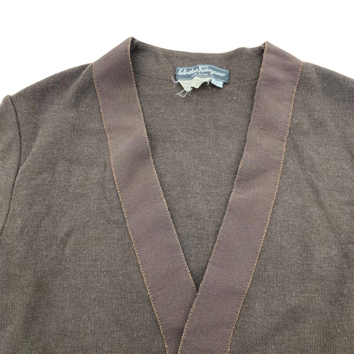 186005 現状品 Salvatore Ferragamo サルウァトオレフェラガモ カーディガン S ブラウン ウール レディース