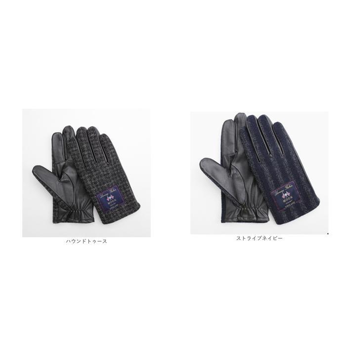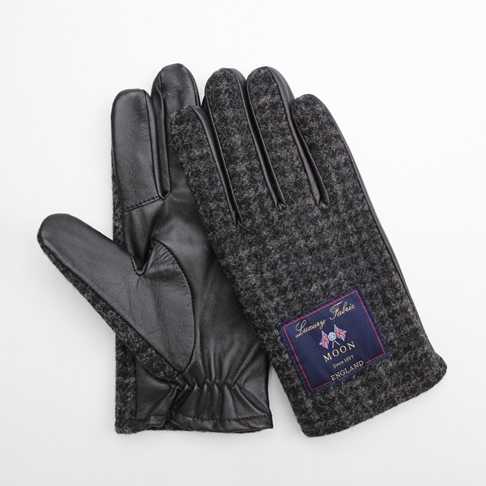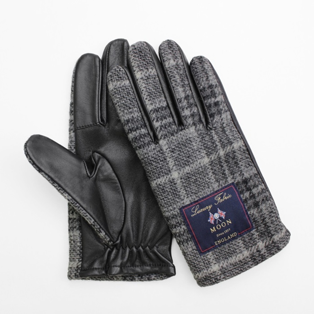 商品説明 | ・・トラッドなMOON生地とレザーのコンビグローブ。 ・様々なスタイルに合わせやすいベーシックな柄パターン。 ・掌親指、人差し指に導電革を使用し、 スマホ・タッチパネル操作に便利。 ・裏地はあたたかな起毛を使用。 |