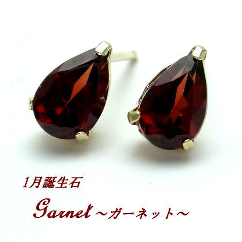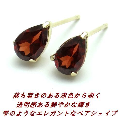 1月誕生石★ガーネット ペアシェイプ K10 ピアス 雫 ジュエリー 10金 WG YG 選べるゴールド 天然石 6x4 高品質 箱付き