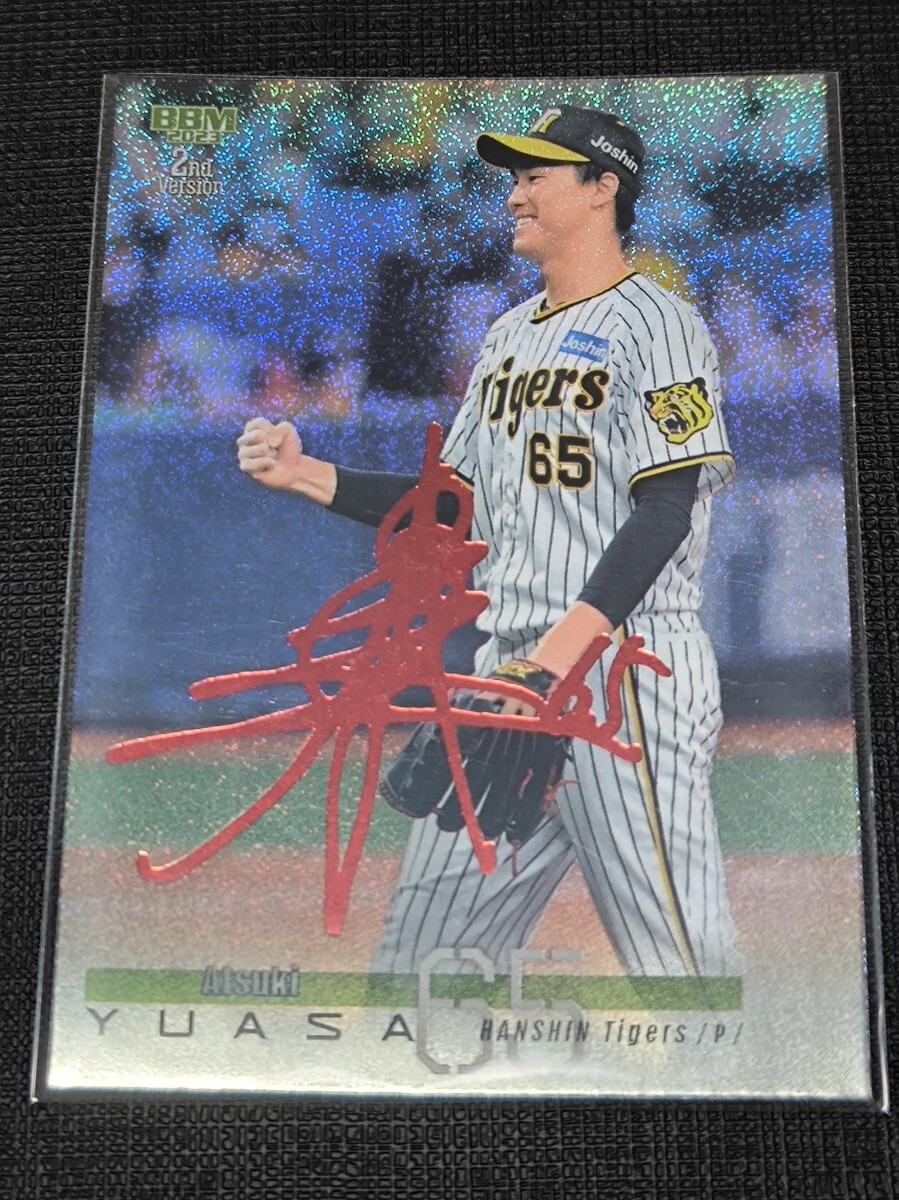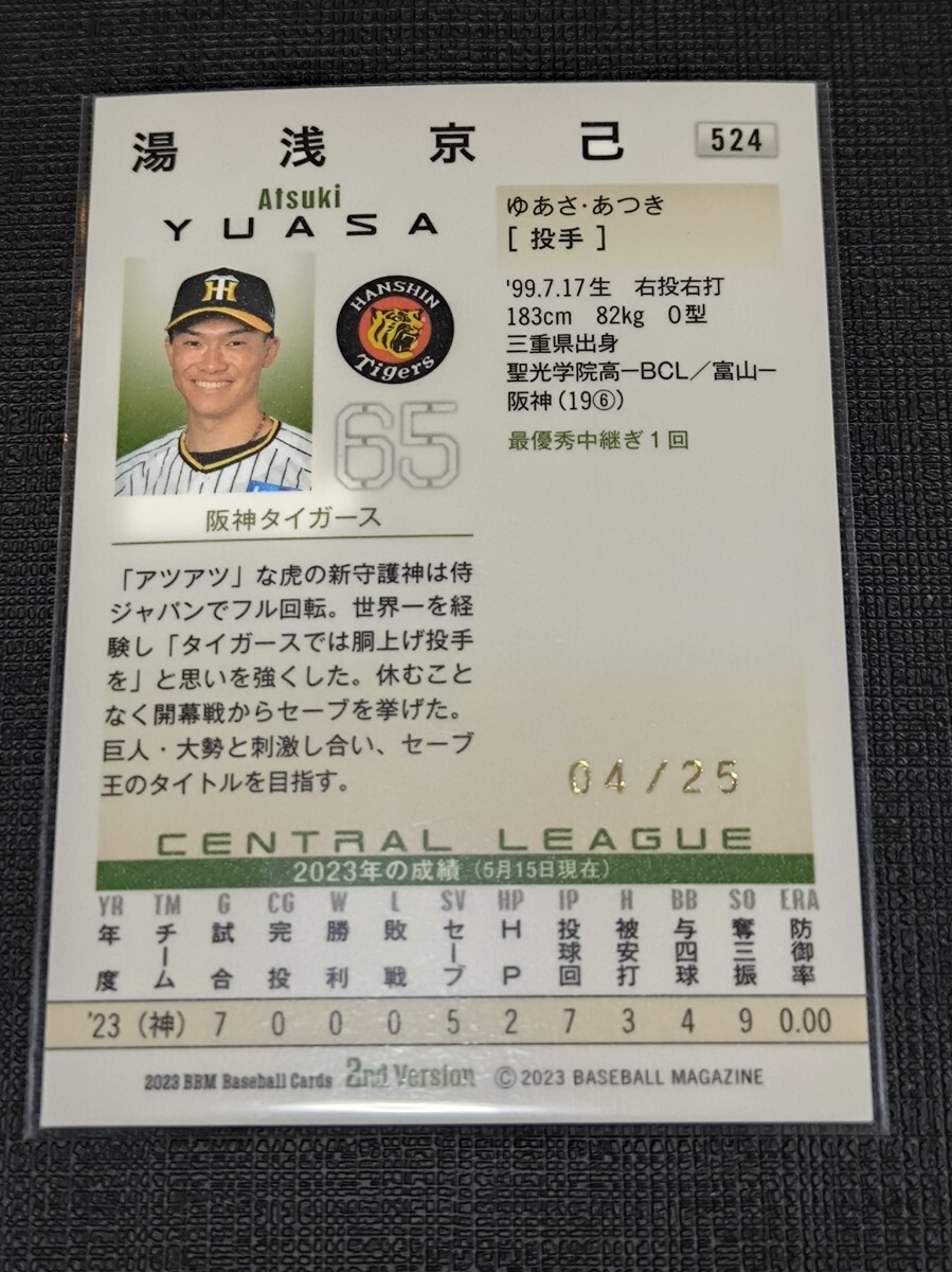 A054: BBM 湯浅京己 阪神 2023 赤箔サイン 25枚限定 シリアル パラレル 524
