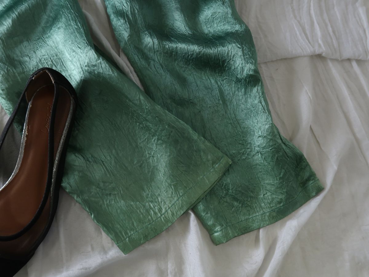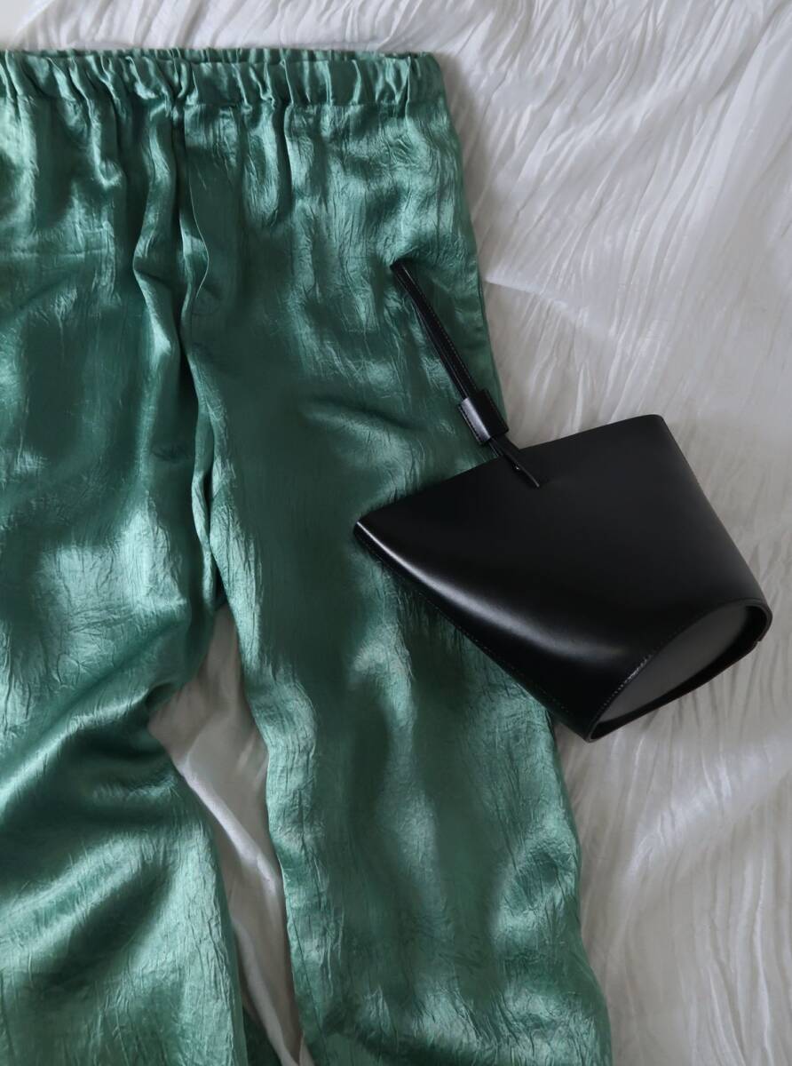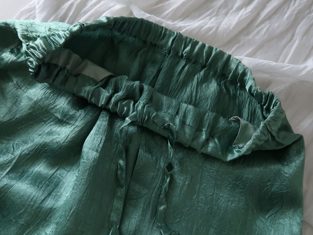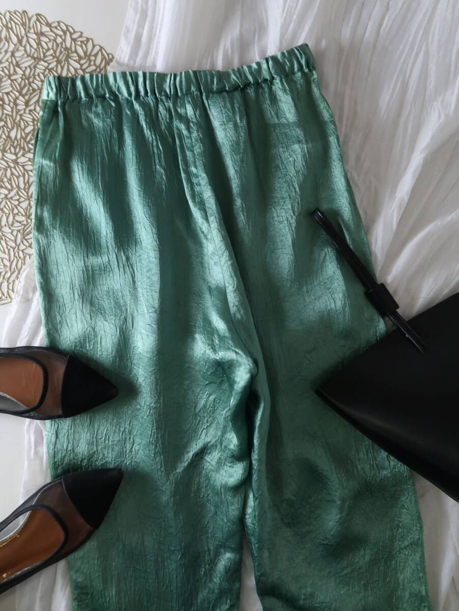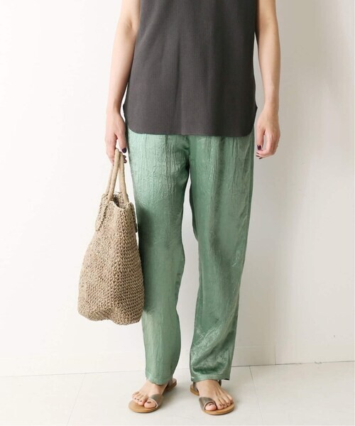 なめらかなサテン素材が心地良いイージーパンツ。ゆとりがありながらもすっきりとした印象に仕上げています。サテン素材独特な程よい光沢感で上品に着こなせる1枚。ウエスト部分はゴム仕様で穿き心地も抜群。ワッシャー加工されているのでサテン生地にありがちな座りジワも気になりません◎