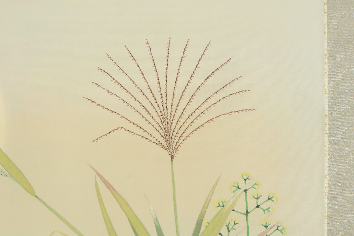 | ・樹下孝太郎「秋草」日本画 掛け軸 共箱二重箱 /静物画 掛軸 太巻き |