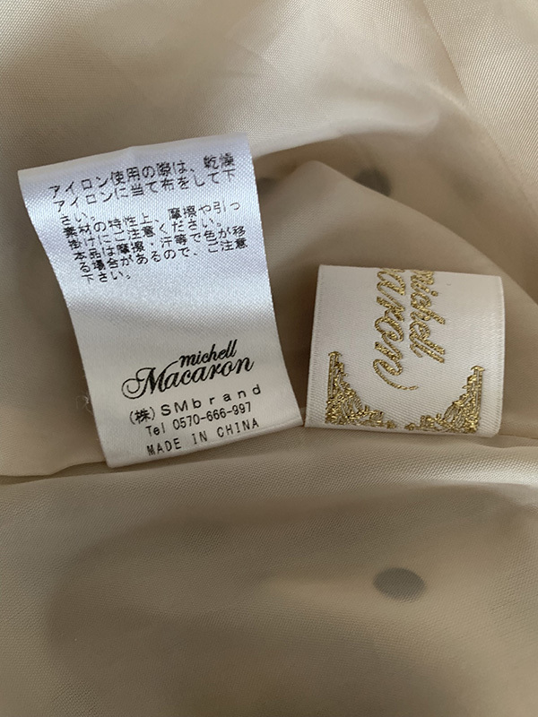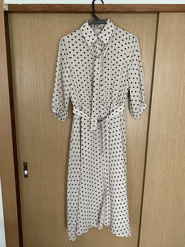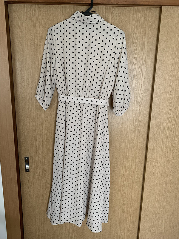 【送料無料】michellMacaron ミシェルマカロン 袖七分丈ワンピース sizeXS/ベージュドット柄 リボン、ベルト付き