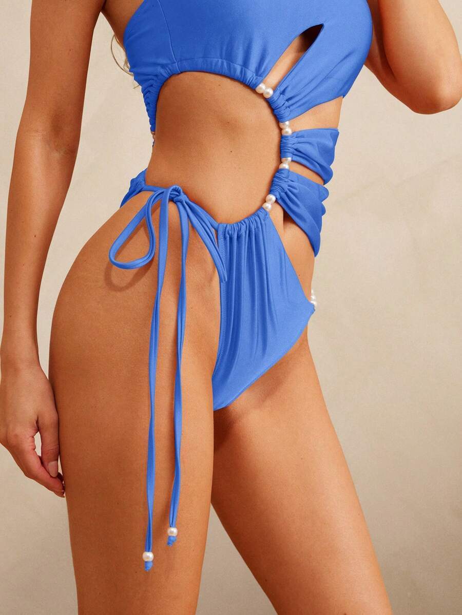 レディース 水着 ワンピース ' ビーズ付ききらめくカットアウトストラップレス水着ワンピース