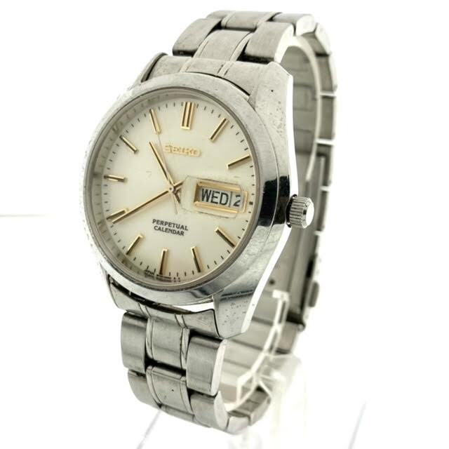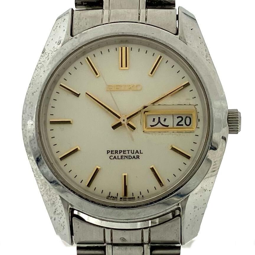 仙14 SEIKO PERPETUAL CALENDAR 8F33-0040 腕時計 クォーツ デイデイト セイコー パーペチュアル カレンダー QZ メンズ アイボリー文字盤