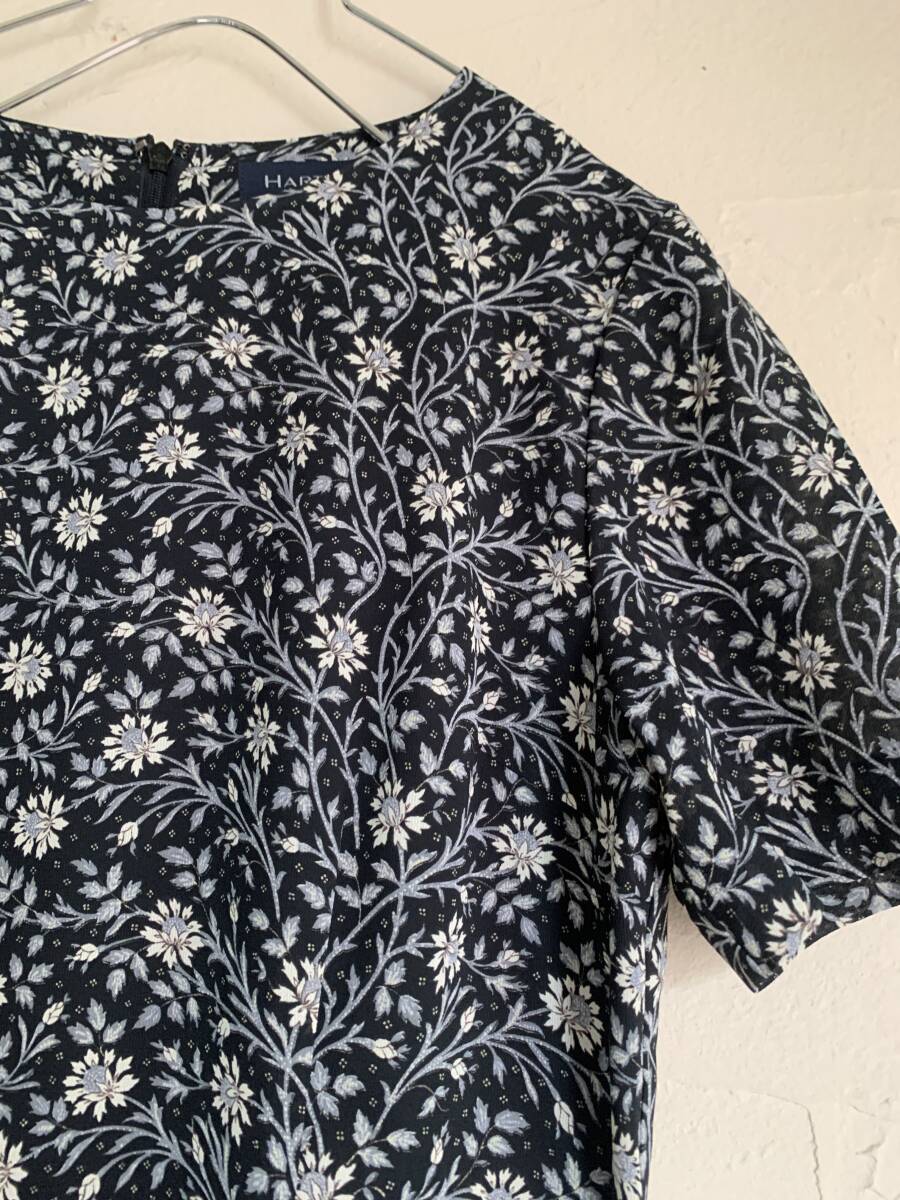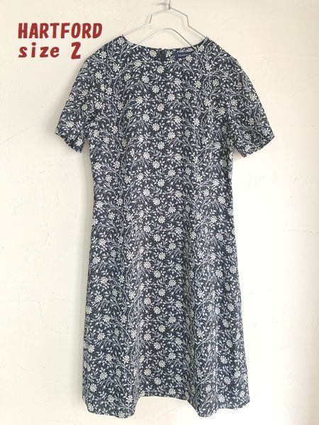 ◆S10◆HARTFORD ハートフォード 小花柄ワンピース 半袖 フラワープリント ブラック/アイボリー/グリーン系 サイズ2
