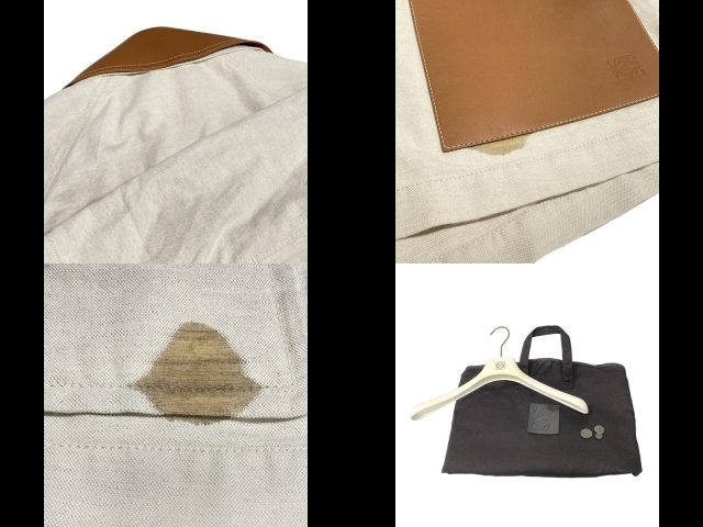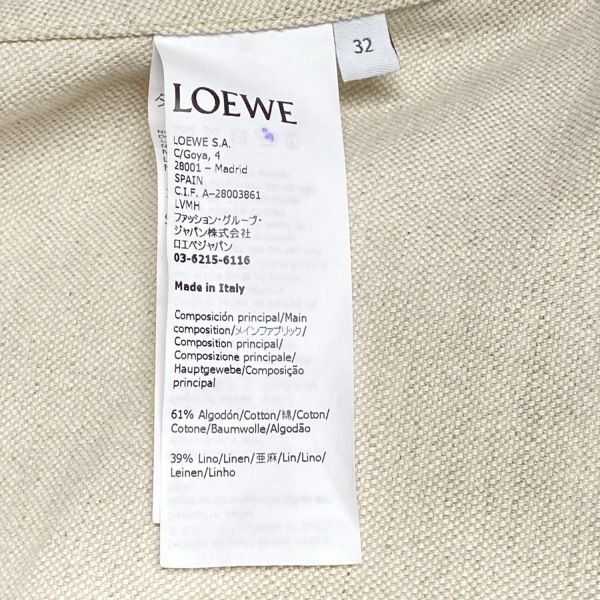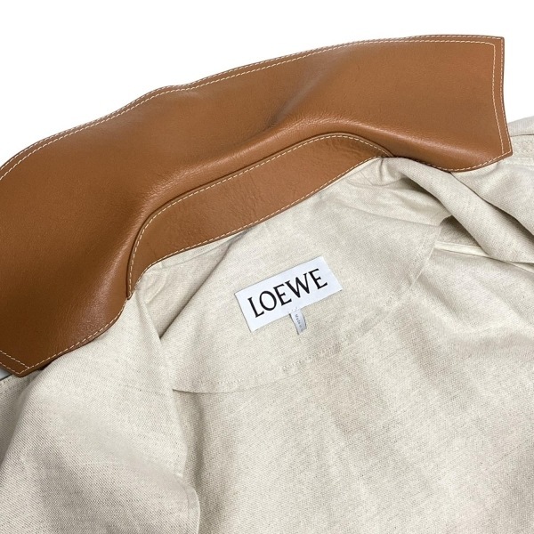 ロエベ LOEWE Pコート サイズ32 XS S359338XAY - コットン、リネン アイボリー×ブラウン レディース レザーカラー/トラペーズ ピーコート