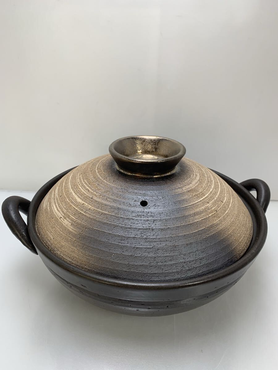 H7-3-50910D 未使用 マルヨシ陶器 手造り土鍋 金彩9号 直火鍋 約3L 日本製 M8716 萬古焼