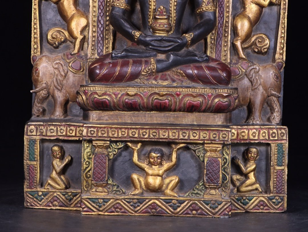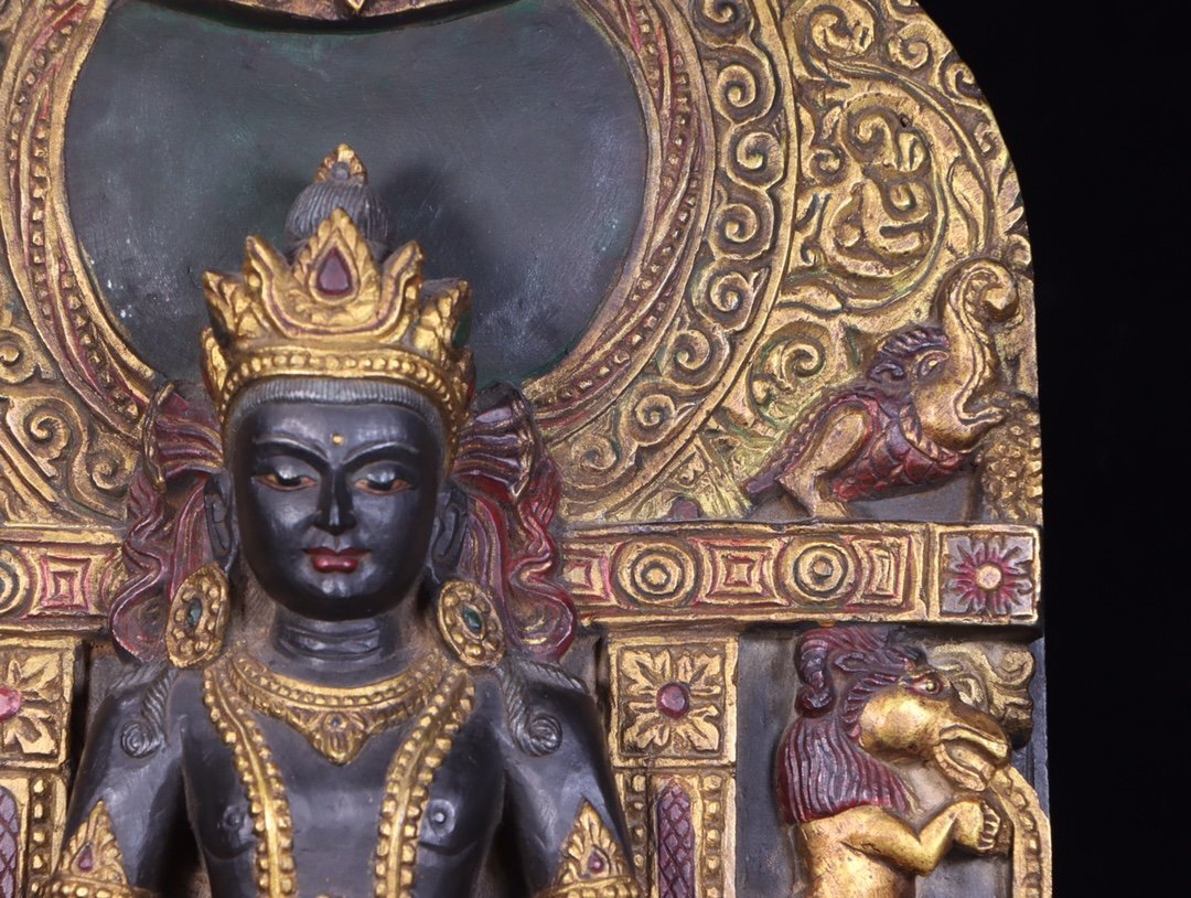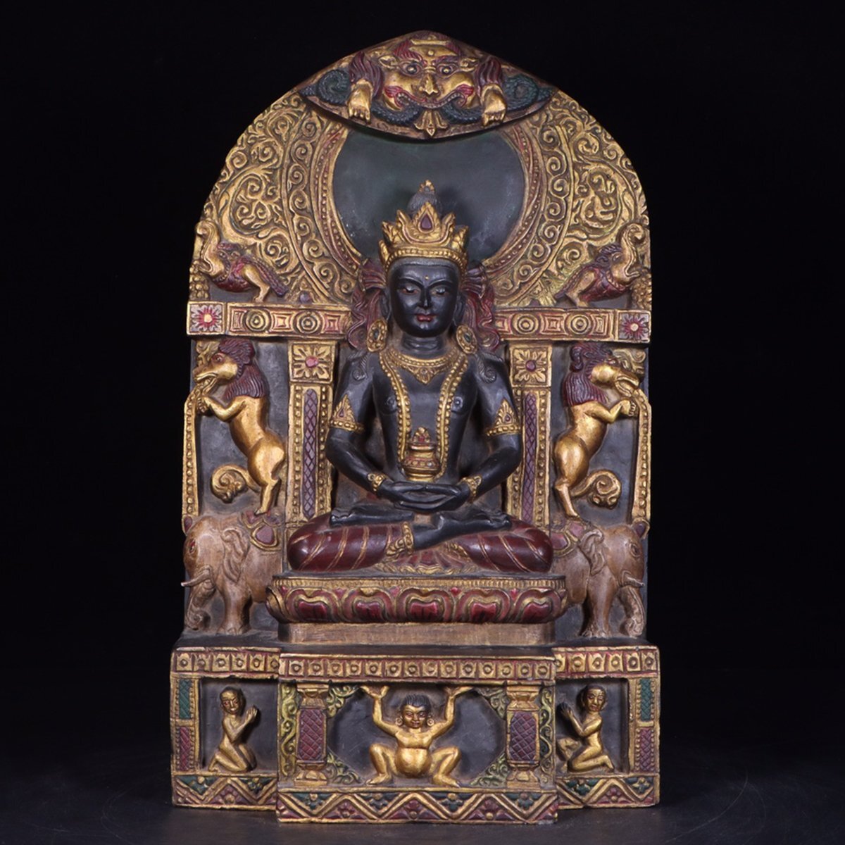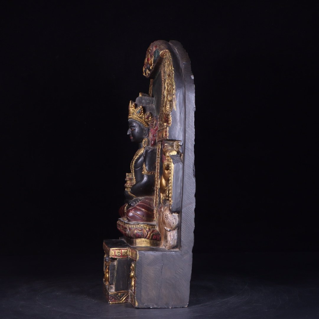【安】清時代 黒石 彫 描金 大黒天仏像 超絶技巧 古擺件 寺寶 細密毛彫 博物館級至宝 廃寺買取 仏教古美術 229 サイズ(約寸) |